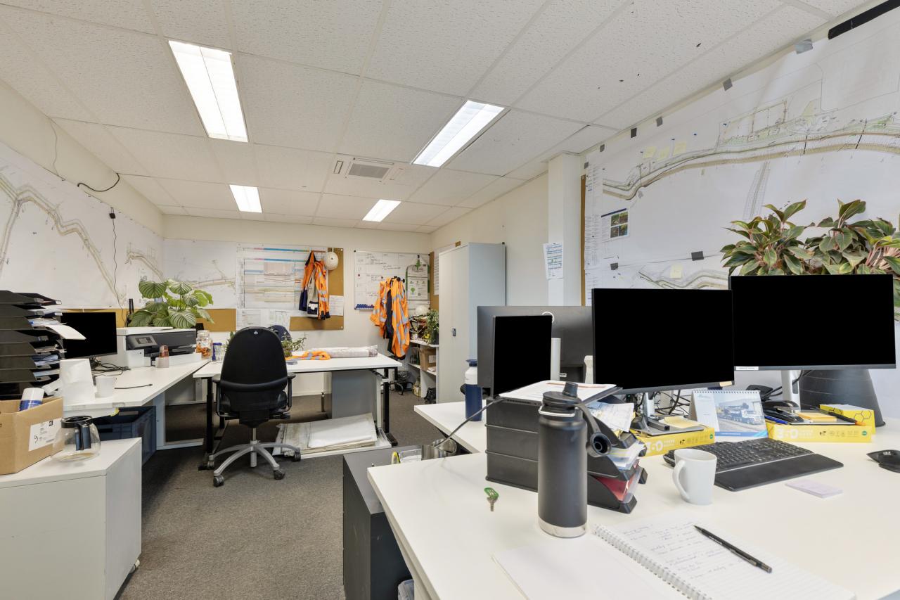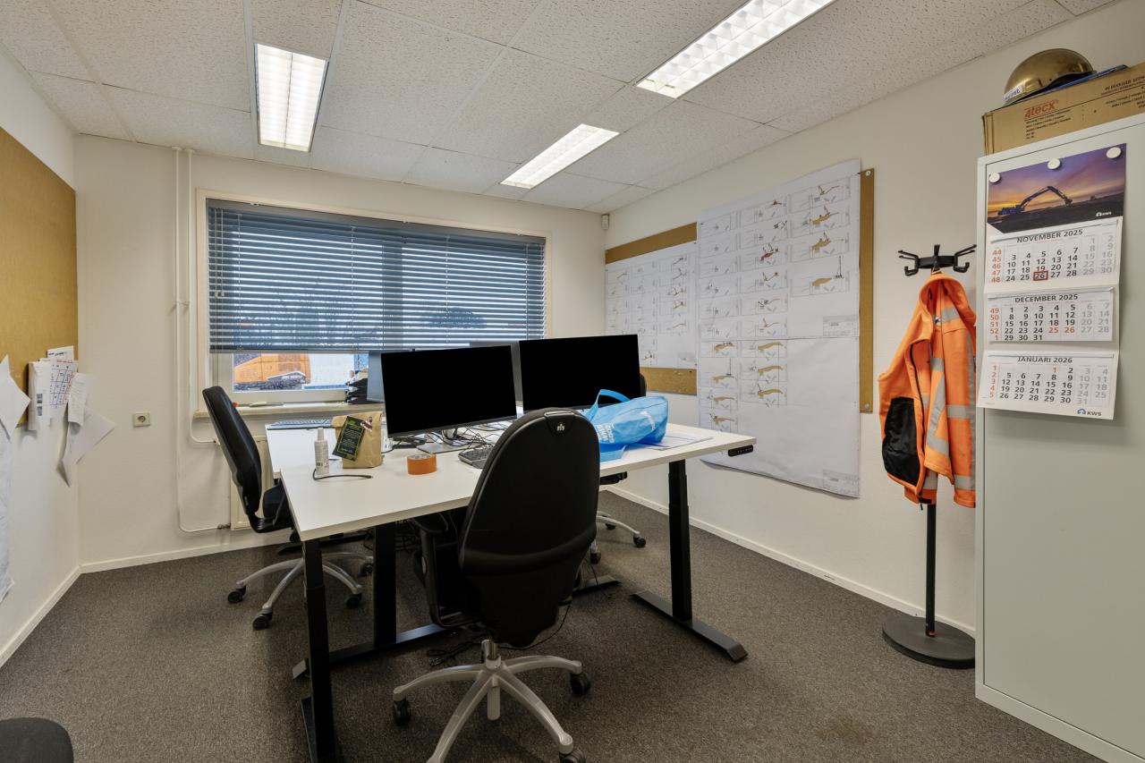 De kantoorruimte is gerealiseerd in een staalconstructie en afgewerkt met sandwichpanelen. De ruimtes zijn voorzien van systeemplafonds, verlichting, klimaatvoorzieningen en sanitaire faciliteiten, waardoor het geheel geschikt is voor direct gebruik.