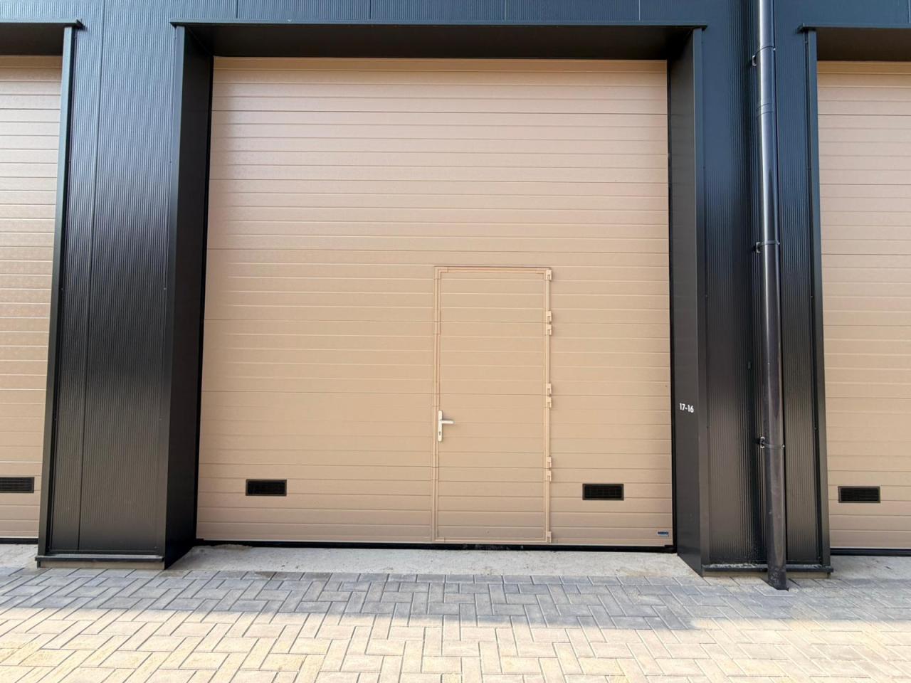 -Deuren: geïsoleerde elektrische sectionaaldeur met geïntegreerde loopdeur