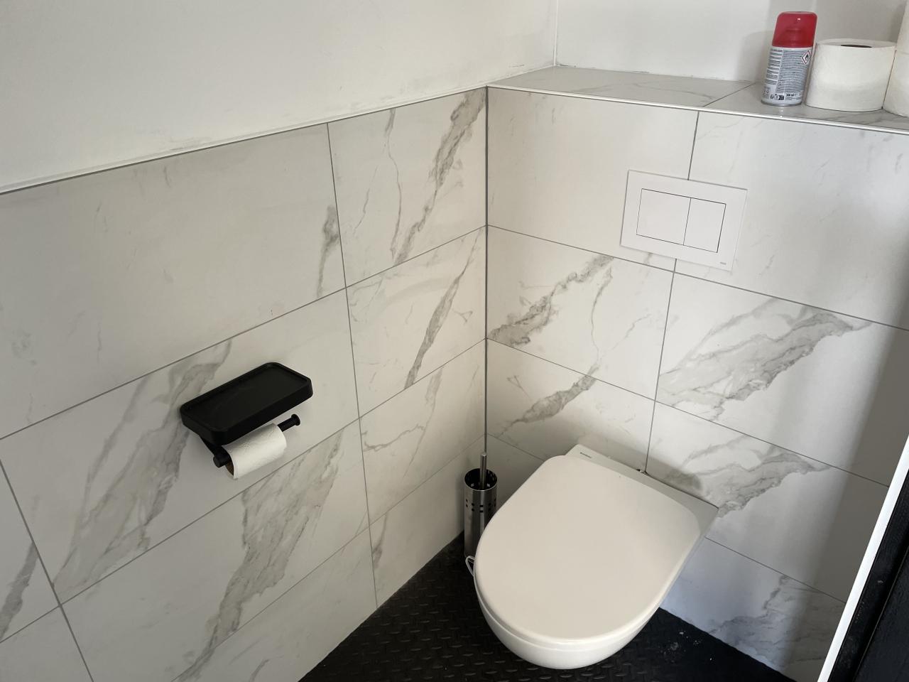 - Ingebouwd (betegeld) toilet met fontein;