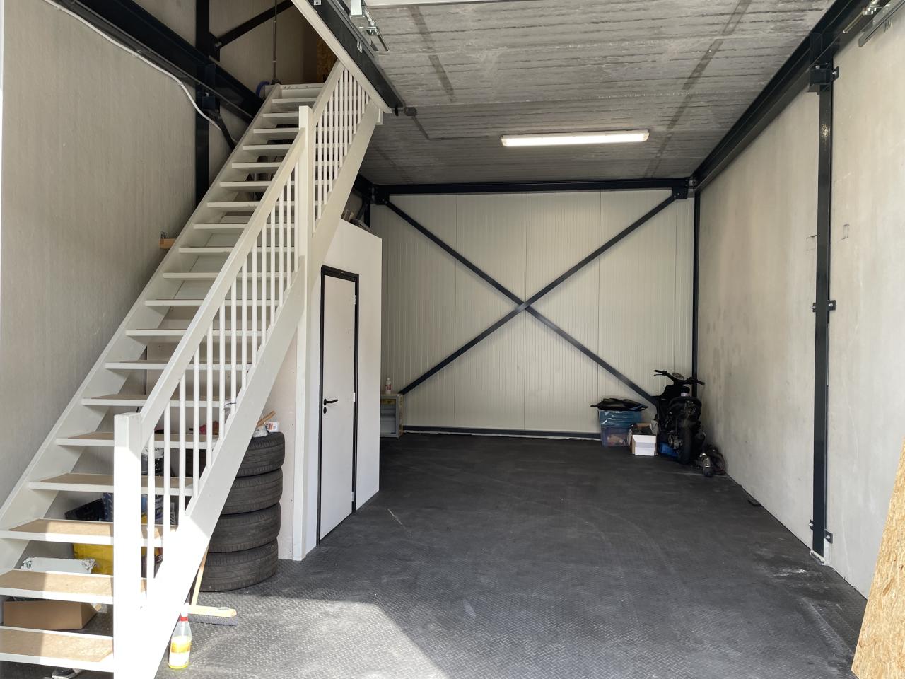 - Betonnen begane grondvloer afgewerkt met rubberen afdekvloer;