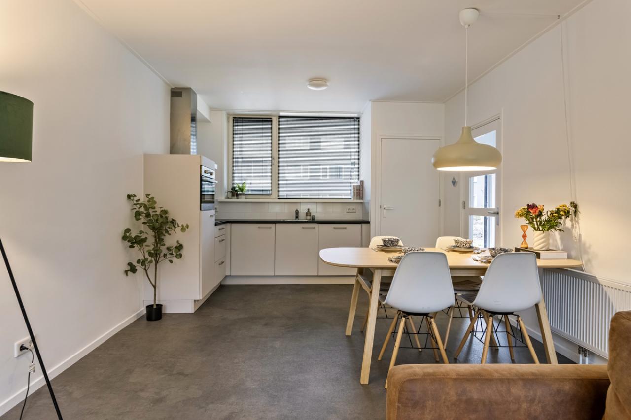 Via de voordeur betreedt u de hal en heeft u toegang tot de multifunctionele kamer, badkamer en woonkamer met open keukenopstelling. De woonkamer heeft aan de voorzijde grote raampartijen en een openslaande deur met toegang naar het terras. De moderne keuken is voorzien van: afzuigkap, combi magnetron, vaatwasmachine, koelkast en inductie kookplaat.