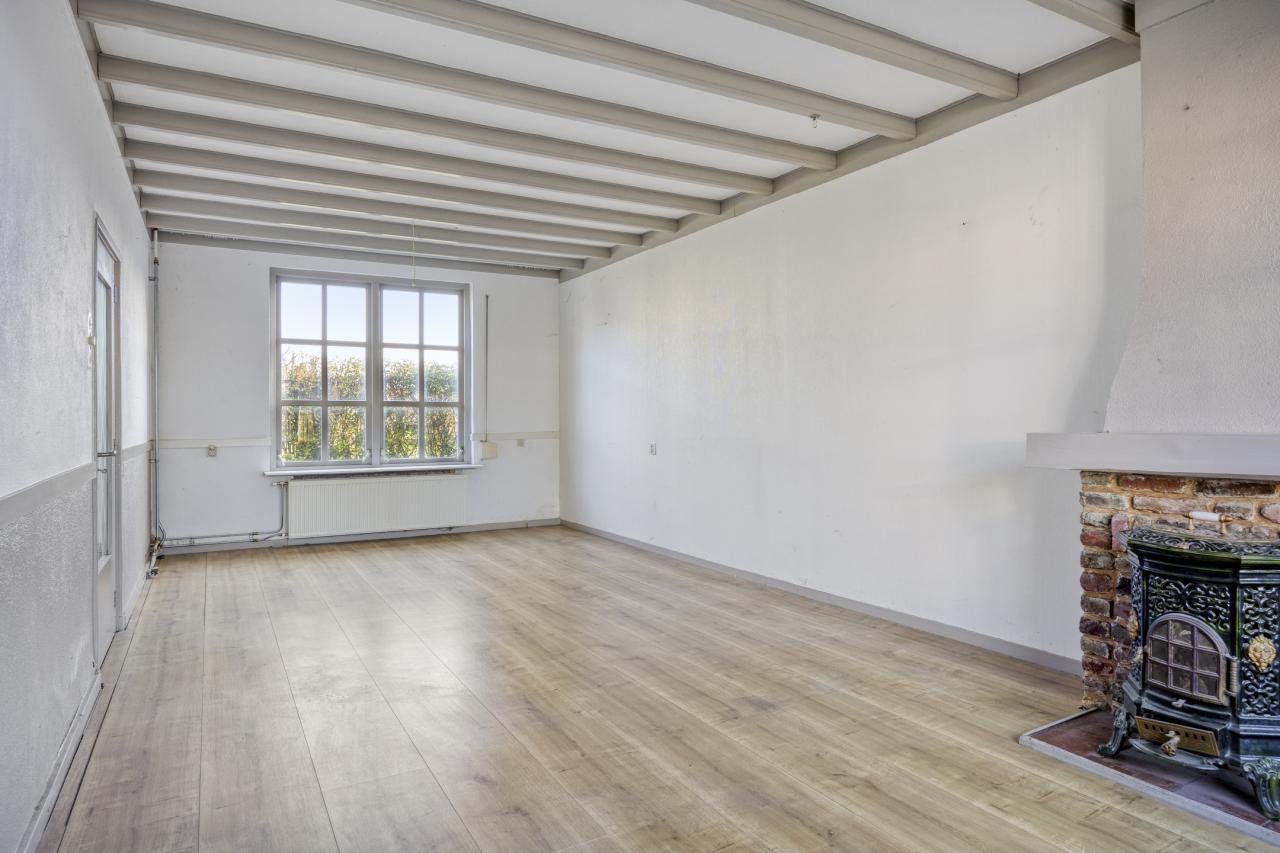 In deze centrale hal komt alles samen. U vindt hier de trapopgang naar de eerste verdieping en toegang tot alle vertrekken op de begane grond. Aan de rechterzijde ligt de lichte doorzonwoonkamer, over de volledige breedte van de woning. Dankzij de grote raampartijen aan beide zijden, de haard en het karakteristieke balkenplafond is dit een sfeervolle leefruimte.