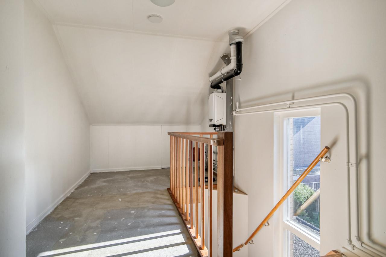 Tweede verdieping: Via een vaste trap bereikt u de zolderverdieping met een ruime vierde slaapkamer (ca. 14 m² binnen de 1,5 m-lijn), voorzien van dakramen en wastafel. Op de overloop vindt u extra bergruimte en de cv-opstelling.