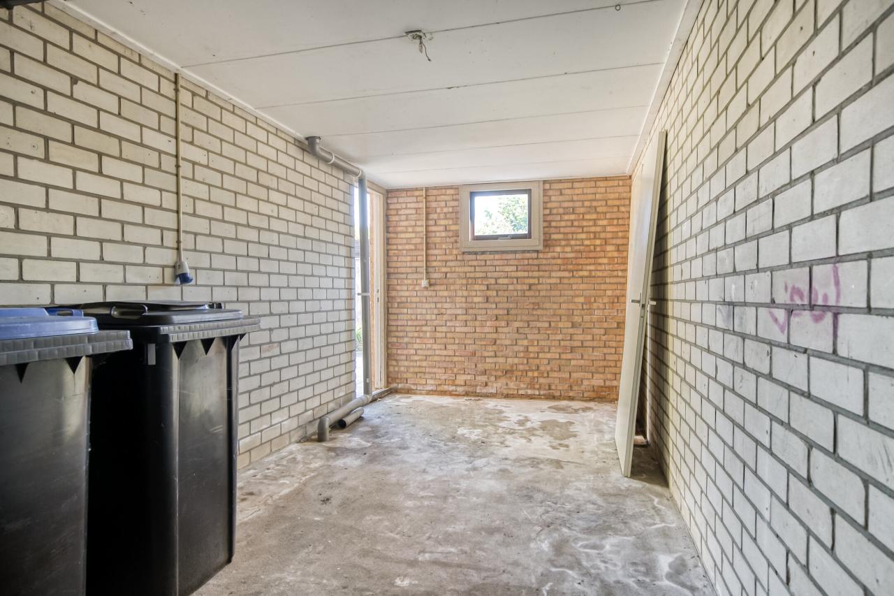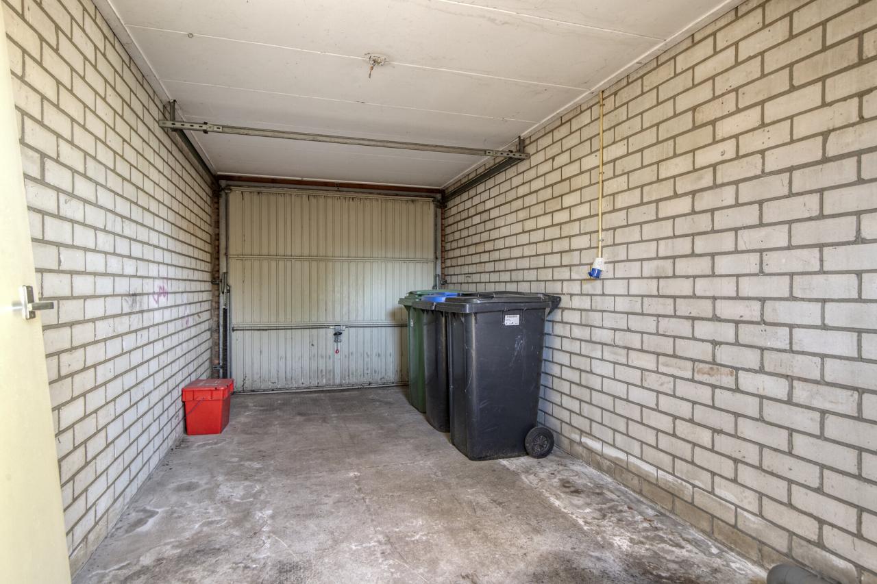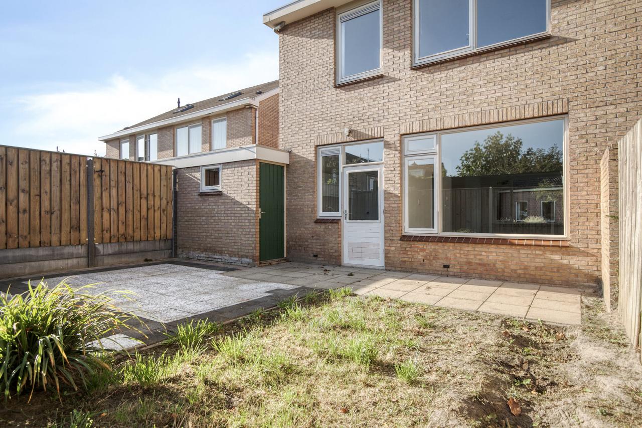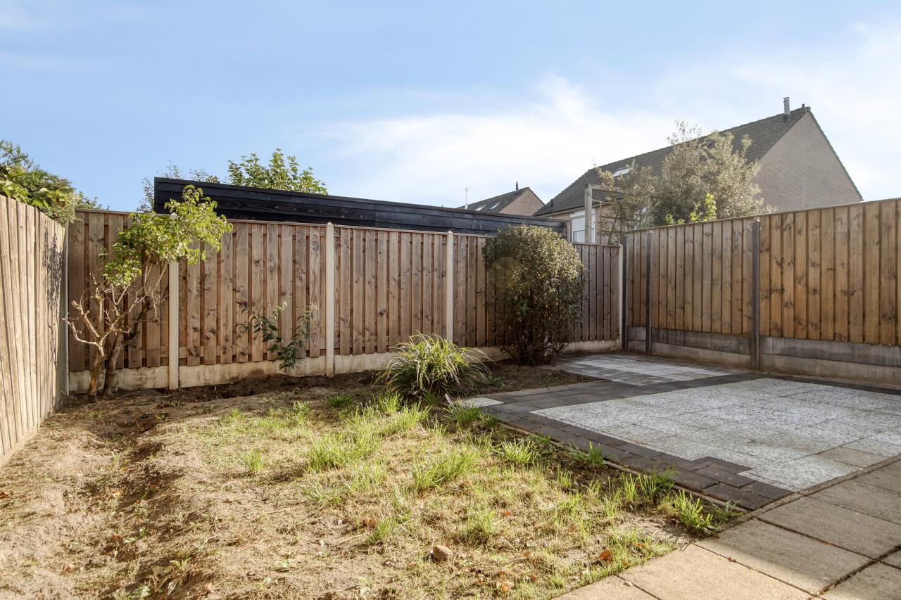 De achtertuin biedt veel privacy en is omsloten met schuttingen. Naast de woning bevindt zich de garage, terwijl de diepe oprit plaats biedt aan twee auto's.