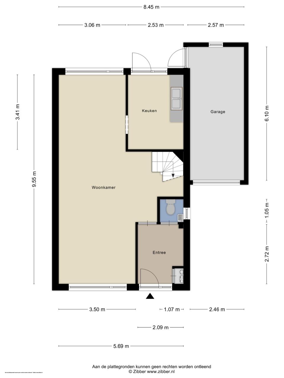 Begane grond: Entree met hal, meterkast en toilet. De royale doorzonwoonkamer (ca. 33 m²) beschikt over een ruime zithoek aan de voorzijde en een eetgedeelte met zicht op de tuin. Vanuit de dichte keuken is er toegang tot de achtertuin en de garage.