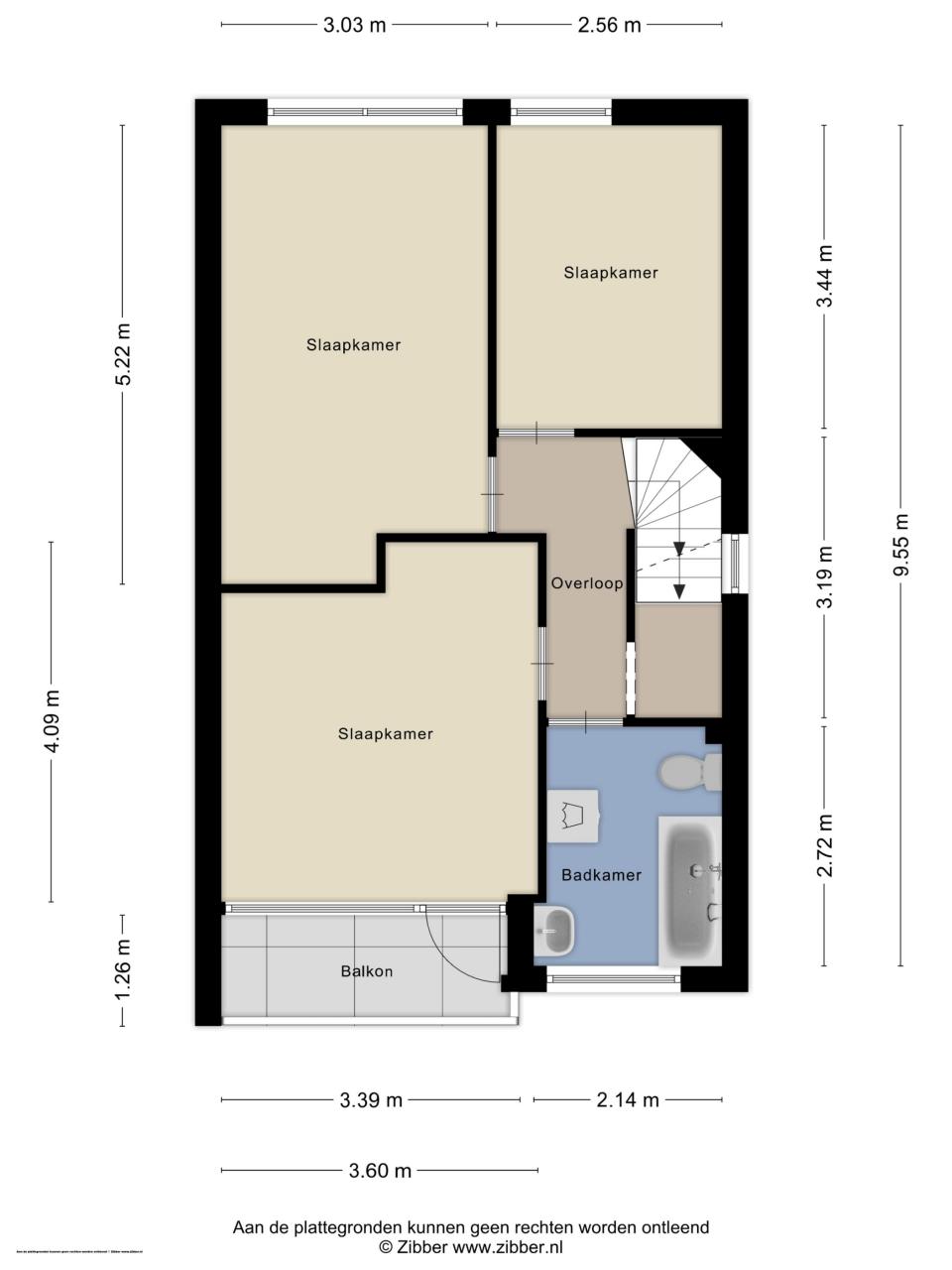 Eerste verdieping: Overloop, drie slaapkamers en een complete badkamer met ligbad, douche, wastafel en toilet. De slaapkamer aan de voorzijde beschikt over een balkon.