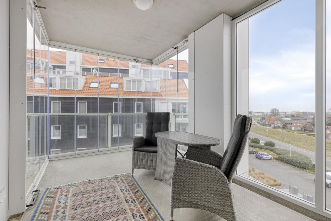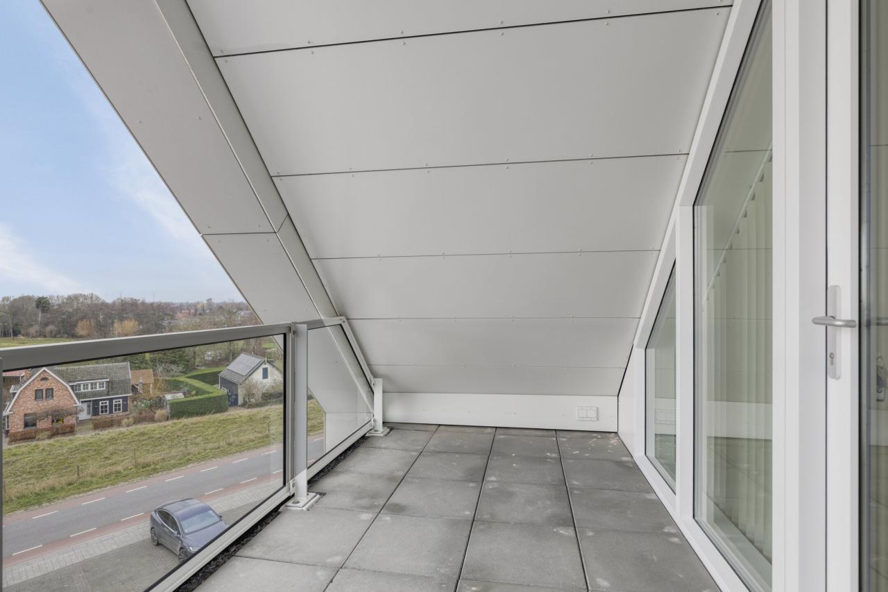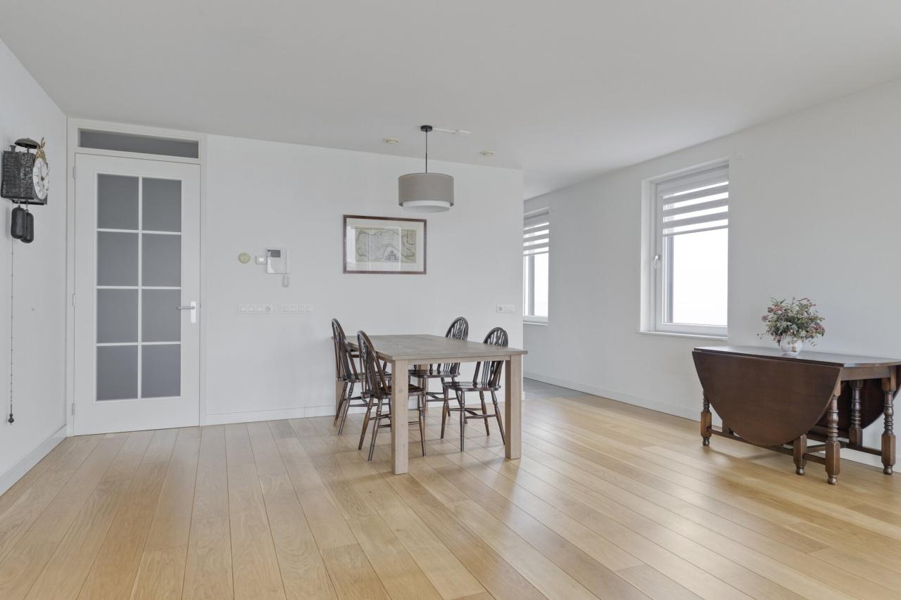 De ligging aan de zuidzijde maakt dit een bijzonder licht appartement. Doordat het balkon aan de oostgevel uitsteekt, is er bovendien een fraai uitzicht over de Oosterschelde.