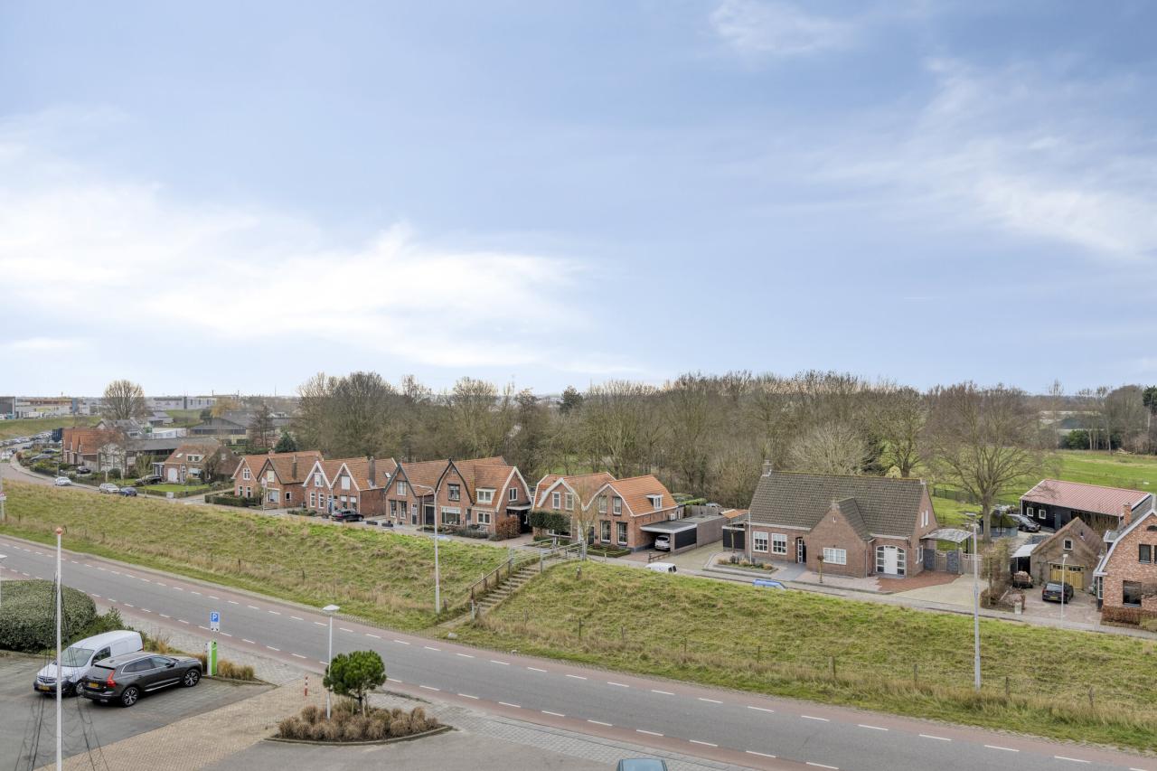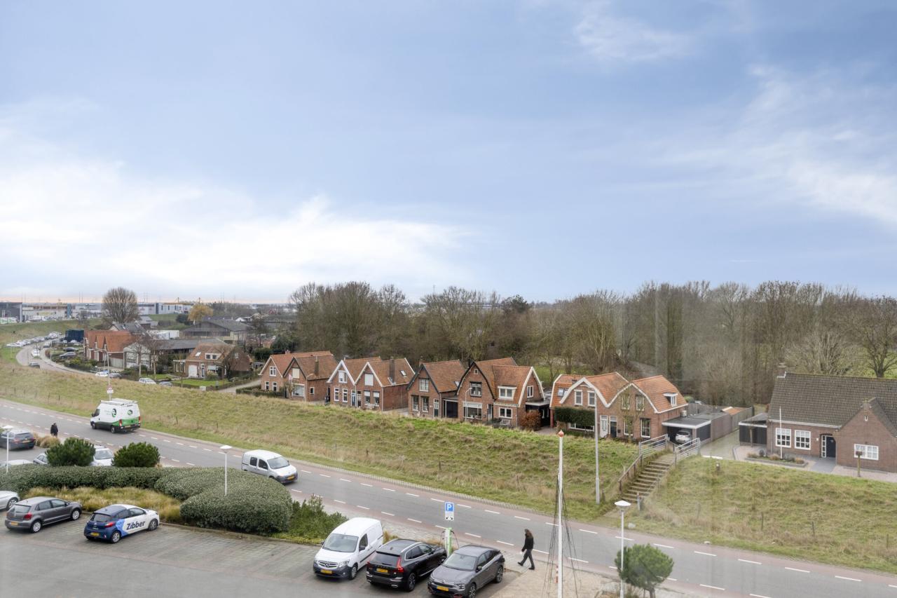 Het uitzicht vanuit dit appartement is uniek en nooit hetzelfde. Vanuit de woning heeft u zowel uitzicht over het dorp en het polderlandschap als zeezicht op de Oosterschelde, met fraaie wolkenluchten en afwisselend rust en levendigheid. Het appartement is gelegen aan de zuidzijde op de derde verdieping en beschikt over twee zonnige balkons, drie slaapkamers, een grote dubbele garagebox en een separate berging. De woonoppervlakte bedraagt circa 156 m². Het geheel is luxe afgewerkt en energiezuinig, met energielabel A+.