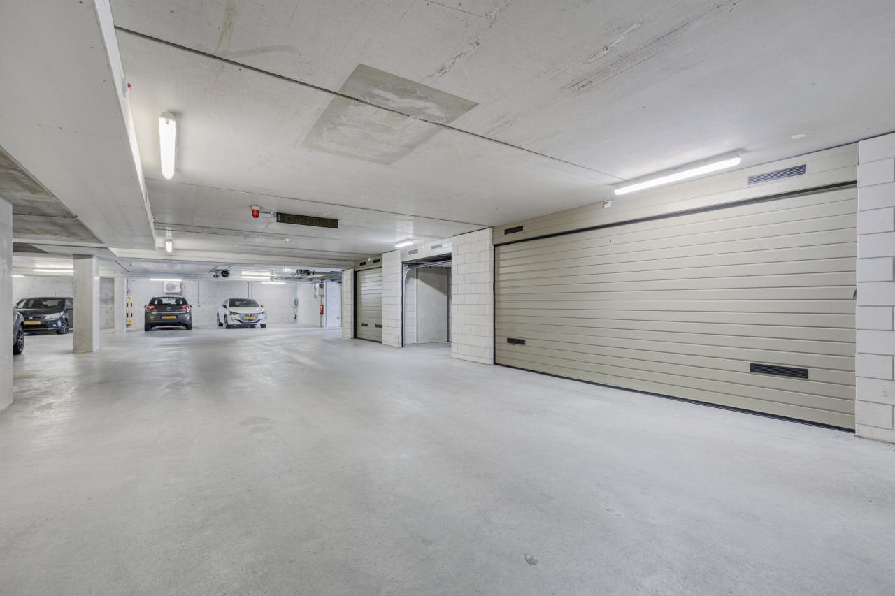 Bij het appartement behoren een eigen dubbele garagebox van circa 42 m² en een separate berging van circa 7 m² in het souterrain.
