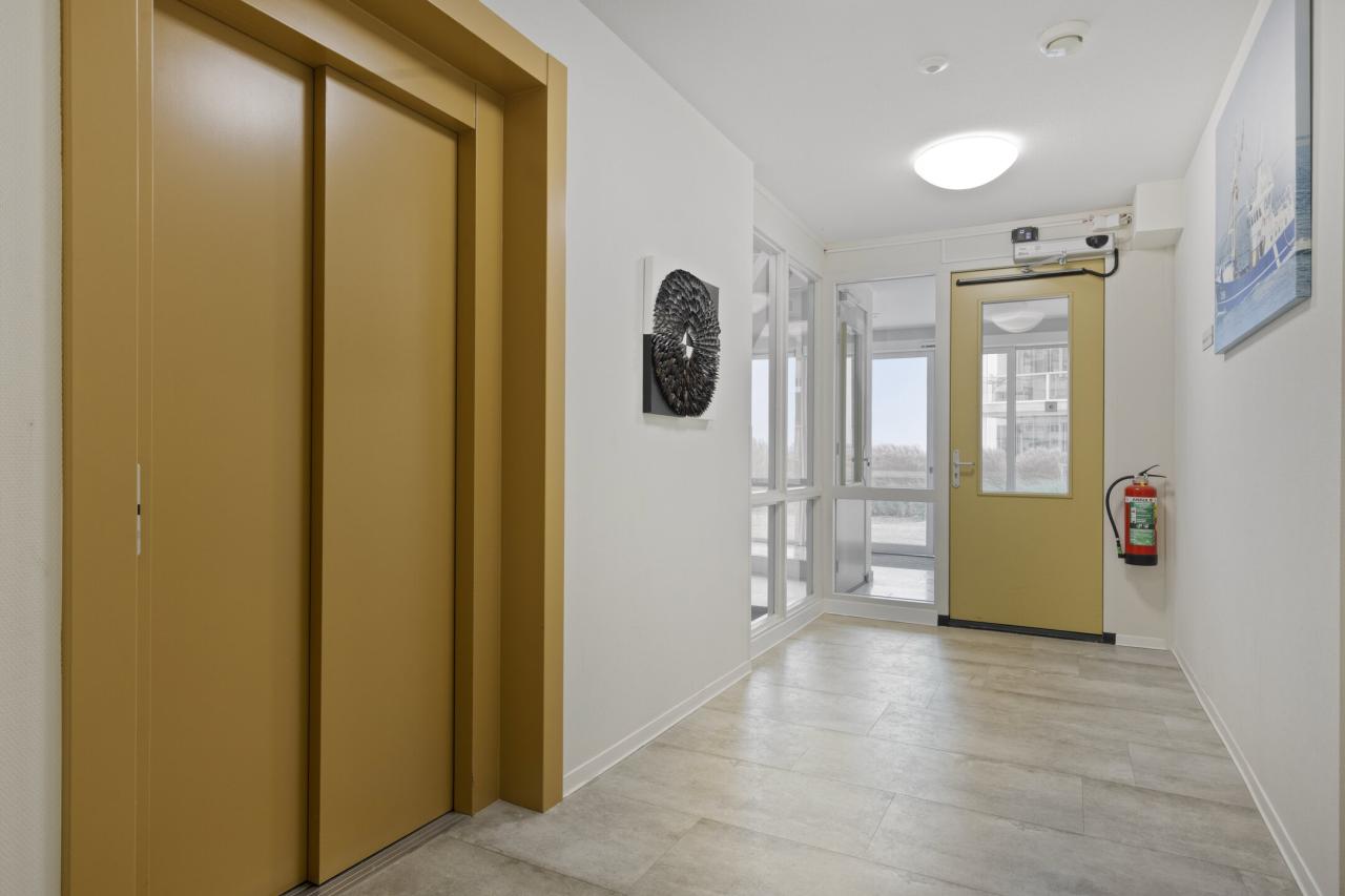Op de begane grond bevindt zich een gezamenlijke, beveiligde entree met postbussen. Vanuit hier bereikt u zowel met de trap als met de lift het appartement en het souterrain, waar zich de eigen dubbele garagebox en berging bevinden.