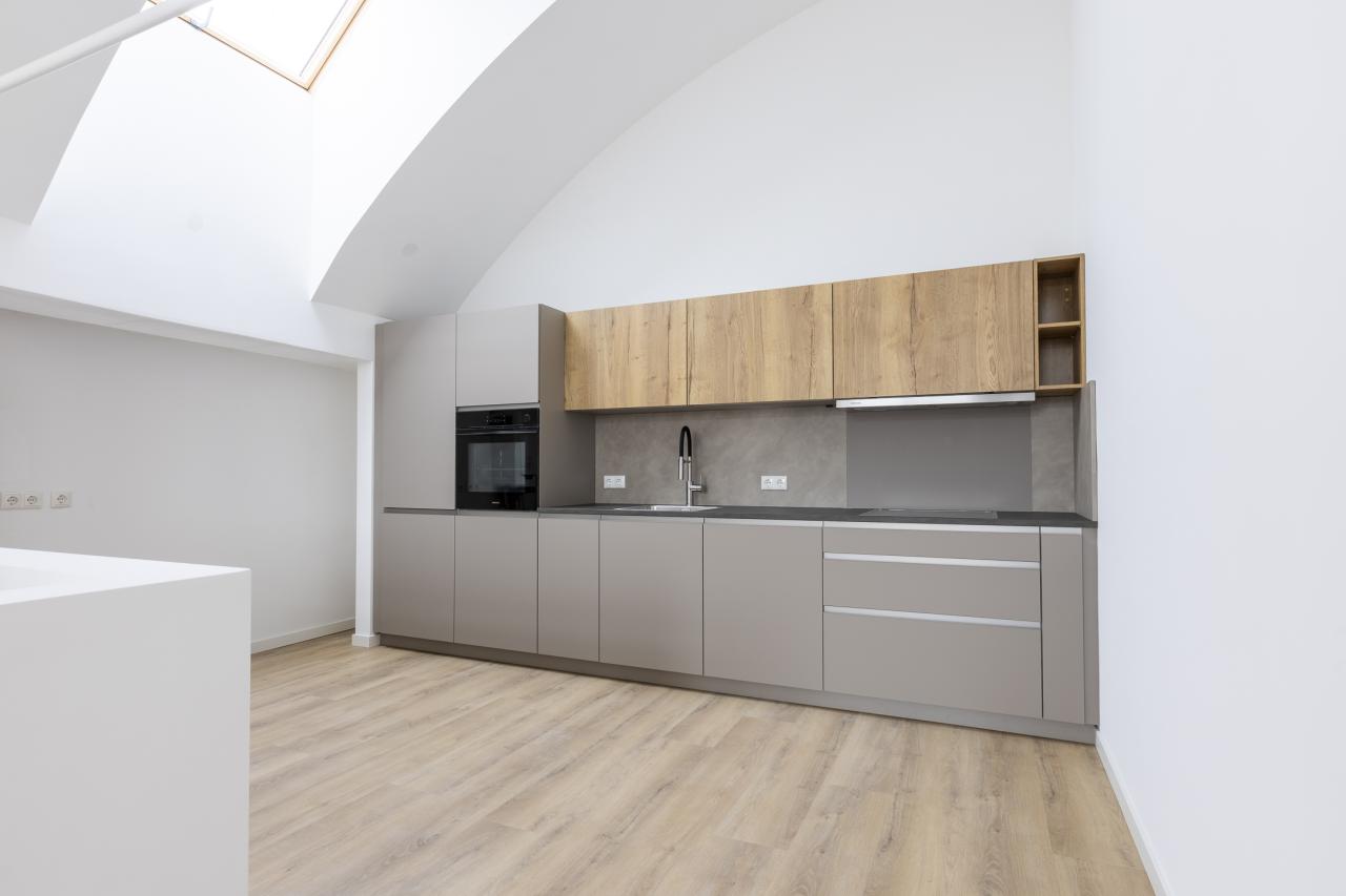 De verdieping beschikt over een zeer lichte woonkamer met openslaande deuren naar het dakterras. Dankzij de grote raampartijen en de hoge plafonds is sprake van een prettige lichtinval en een ruimtelijk gevoel. De open keuken is tijdloos uitgevoerd en voorzien van alle gemakken, waaronder een combi-oven, vaatwasser, koelkast, inductiekookplaat en afzuigkap.