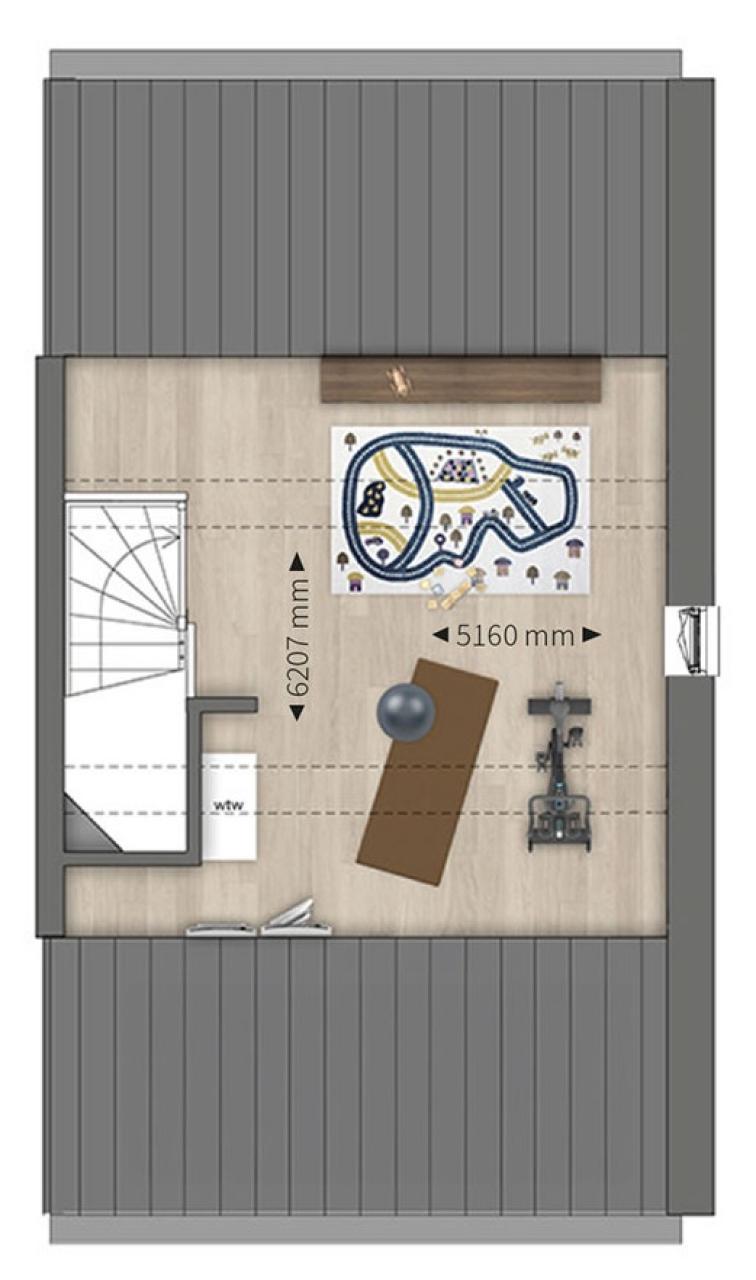 De open zolder is ruim en daar bevinden zich diverse technische installaties en de aansluiting voor de wasmachine. De zolder kan optioneel voorzien worden van een indeling waardoor de woning over totaal 4 slaapkamers beschikt.