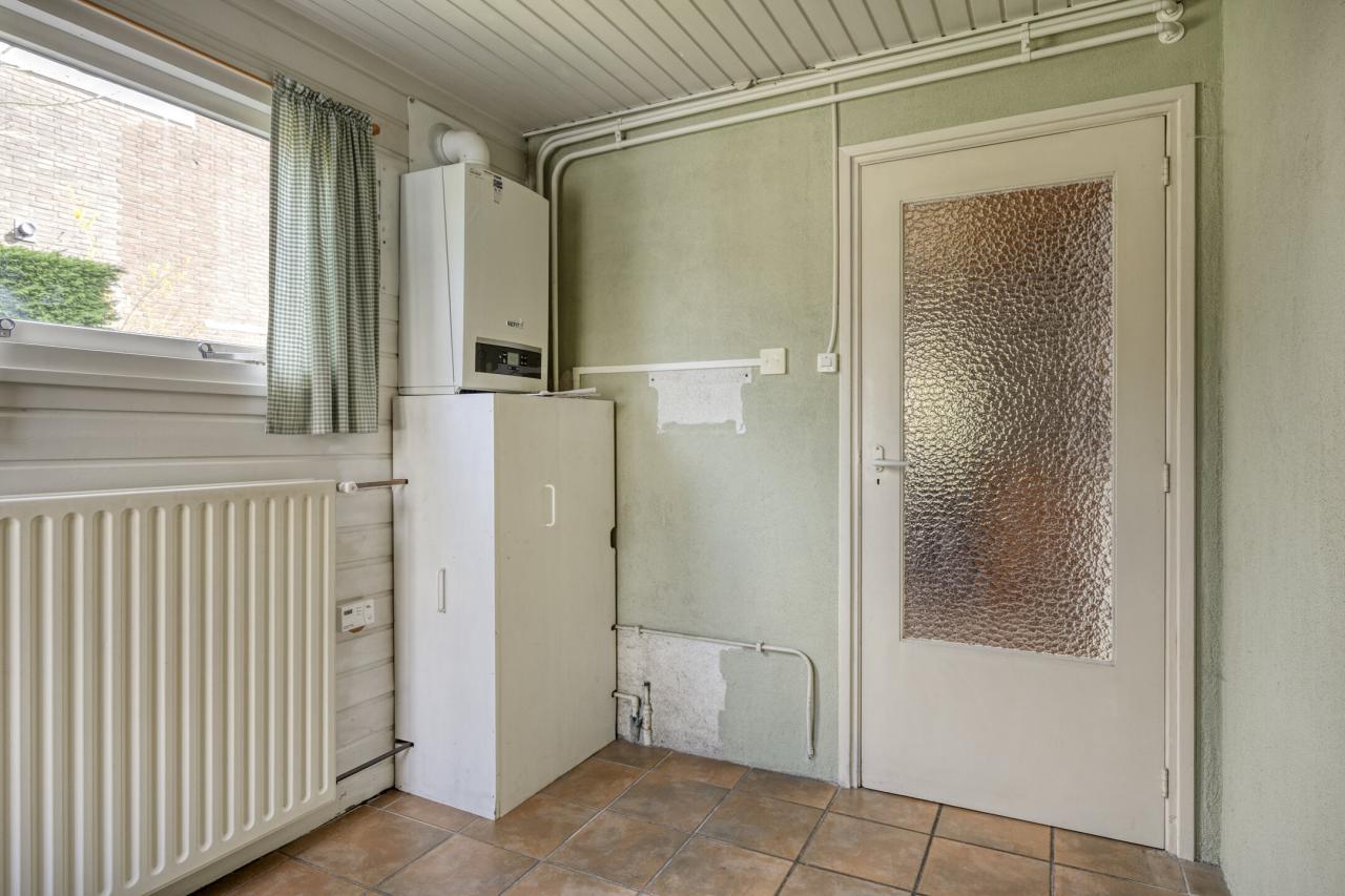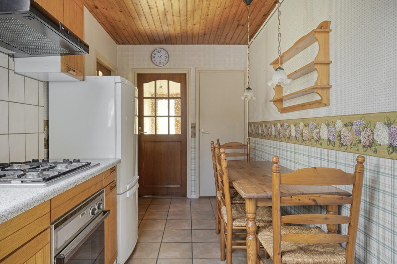Aansluitend bevindt zich de separate keuken, die eveneens licht is en beschikt over voldoende ruimte. Vanuit de keuken is er toegang tot een royale bijkeuken, wat extra bergruimte en praktische mogelijkheden biedt.