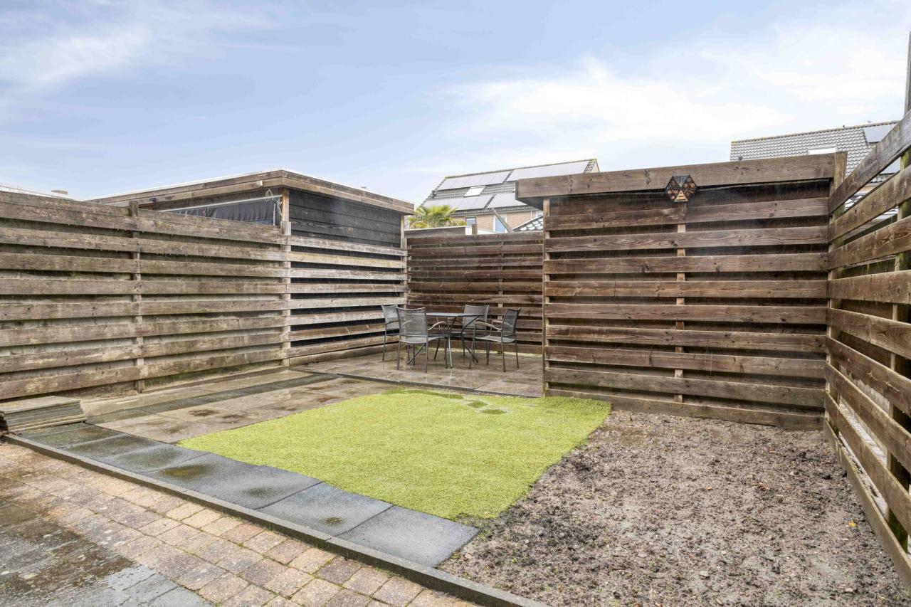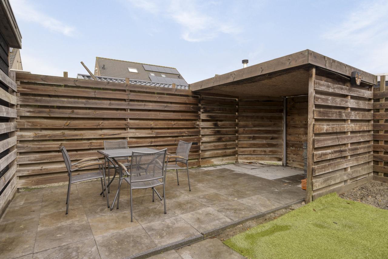 De achtertuin is volledig omheind en bereikbaar via een poort aan de zijkant. Er zijn twee terrassen, waardoor je altijd kunt kiezen voor zon of schaduw. Achterin staat een fijne overkapping. De bezonning is uitstekend.