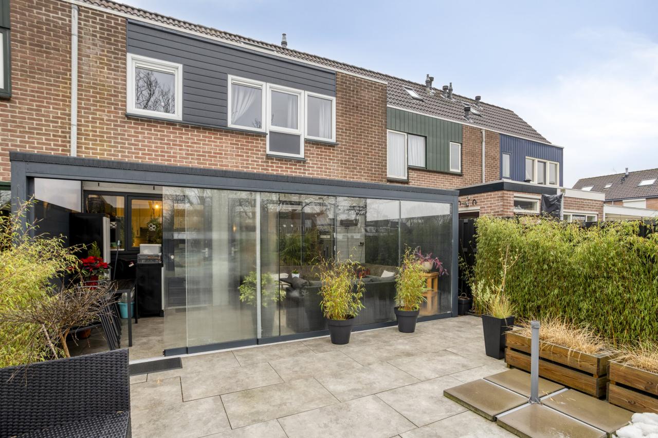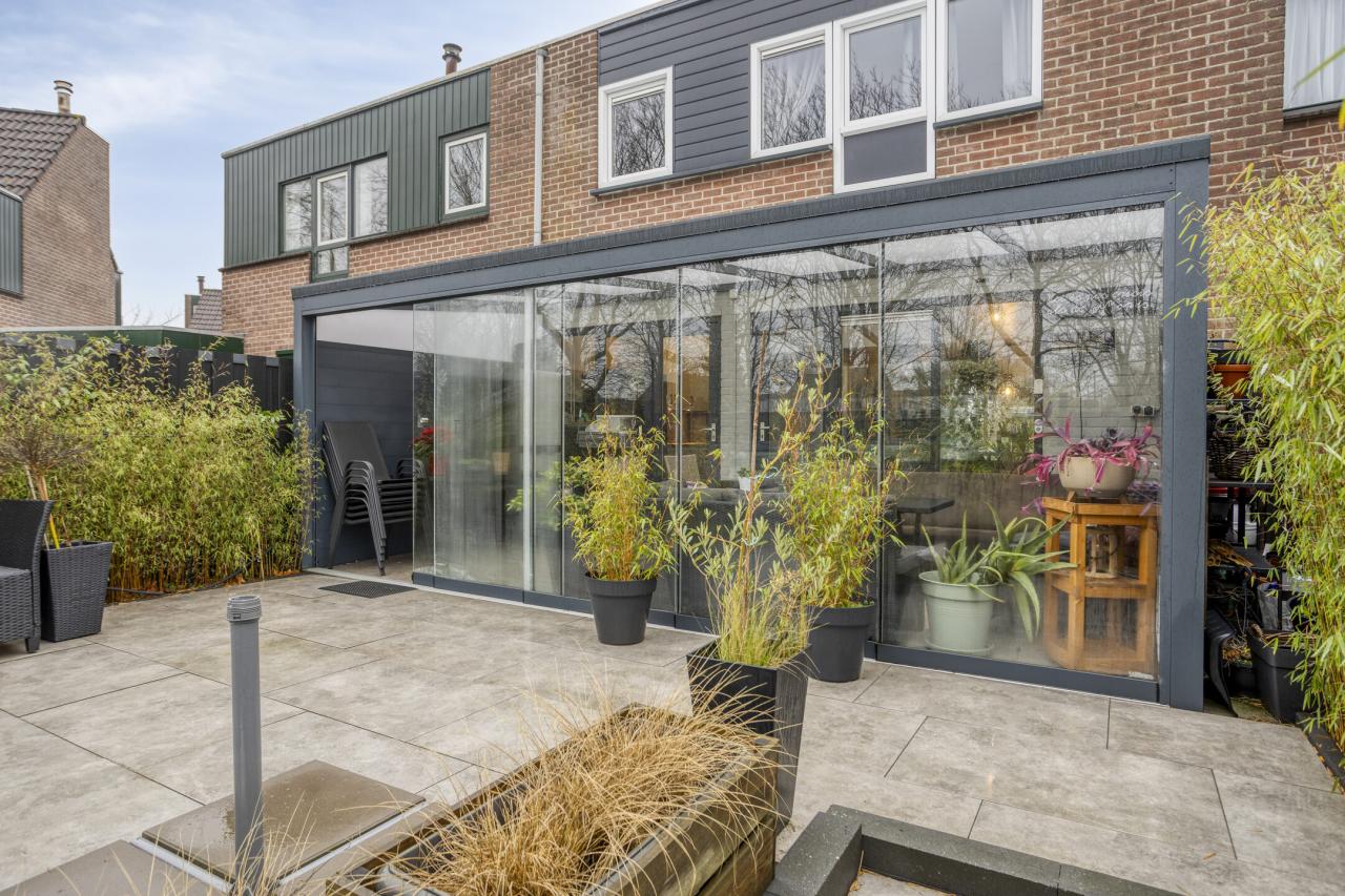 De woning is met zorg onderhouden en grotendeels voorzien van kunststof kozijnen en gevelbetimmering. De volledige isolatie en de aanwezigheid van negen zonnepanelen zorgen voor comfortabel en energiezuinig wonen, wat resulteert in energielabel B. De aangebouwde tuinkamer is een absolute eyecatcher. Dit is een plek waar je het hele jaar door kunt genieten, of het nu gaat om een zonnige zomerdag of een frisse winteravond. Achter de woning ligt een groen plantsoen met speeltoestellen, wat zorgt voor een vrij en open gevoel. Parkeren kan eenvoudig op de eigen oprit of in de achterliggende straat.
