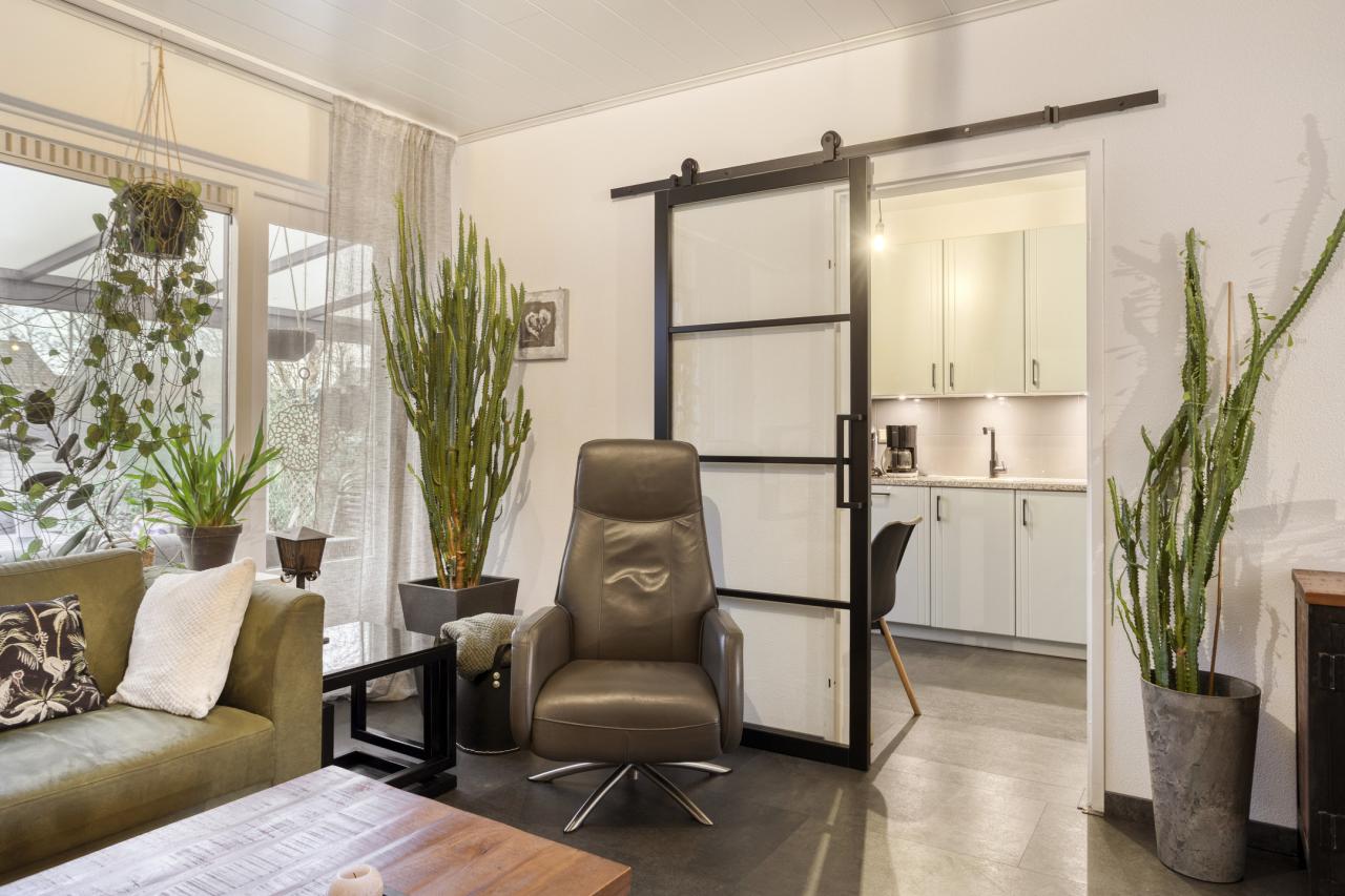 De keuken is praktisch en compleet ingericht met een granieten aanrechtblad en diverse inbouwapparatuur, waaronder een vaatwasser, combimagnetron, heteluchtoven, koel-vriescombinatie, afzuigkap en inductiekookplaat. Vanuit de keuken stap je zo de serre in. Een heerlijke extra leefruimte waar je, dankzij de glazen schuifwanden, ook in de winter comfortabel kunt zitten met een terrasverwarmer aan.