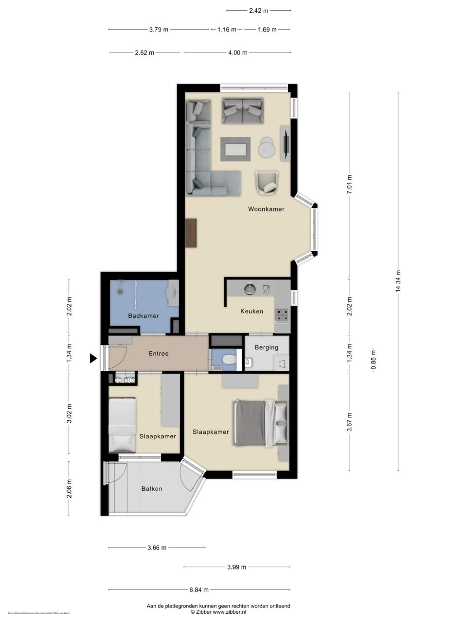 Via de hal zijn de twee slaapkamers bereikbaar. De kleinere kamer (ca. 2,88 x 3,06 m) kan ook goed dienst doen als werkkamer. De ruime hoofdslaapkamer (ca. 3,68 x 4,01 m) heeft directe toegang tot het balkon.