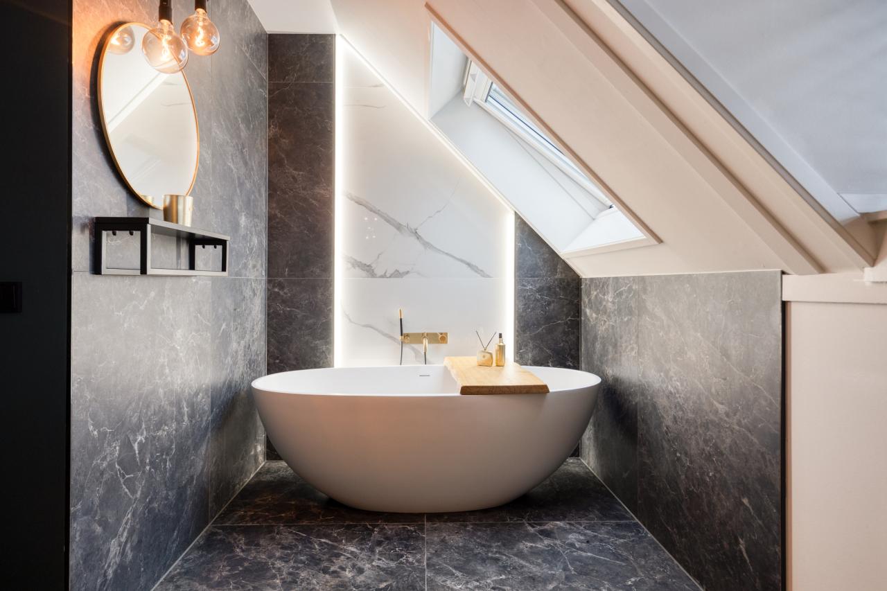 De ouderslaapkamer (ca. 20 m²) is een echte eyecatcher met een stijlvol vrijstaand ligbad, een indeling en afwerking die doet denken aan de luxe van een hotelsuite. Aan de achterzijde is bovendien een dakkapel geplaatst, wat extra ruimte en licht oplevert. De overige twee slaapkamers op deze verdieping zijn beide ca. 9 m² groot.