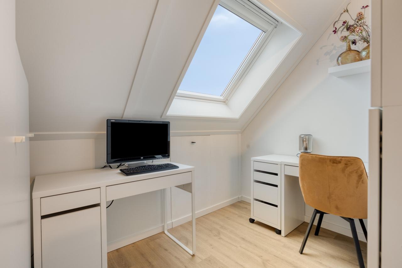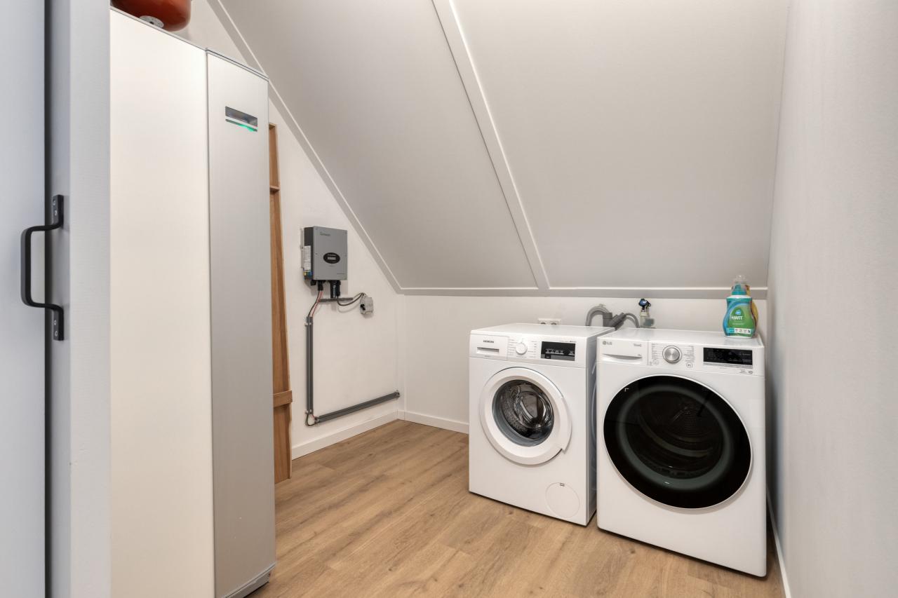 (ca. 7 m² en 8 m²), beide voorzien van een dakraam. Daarnaast is er een praktische technische ruimte met opstelplaats voor de warmtepomp en witgoedapparatuur.