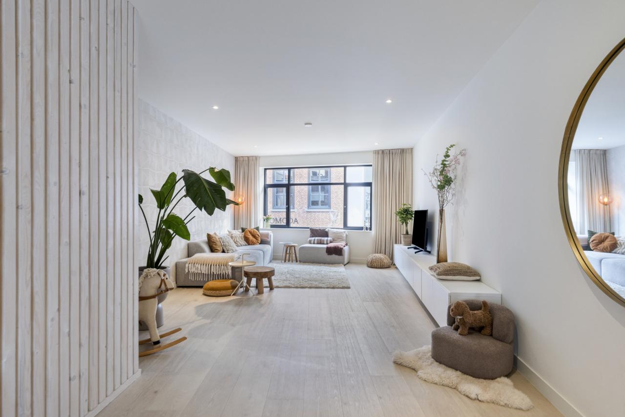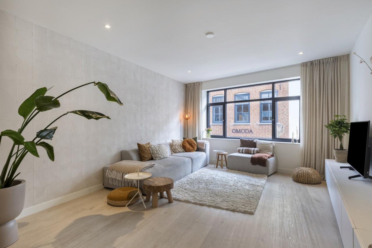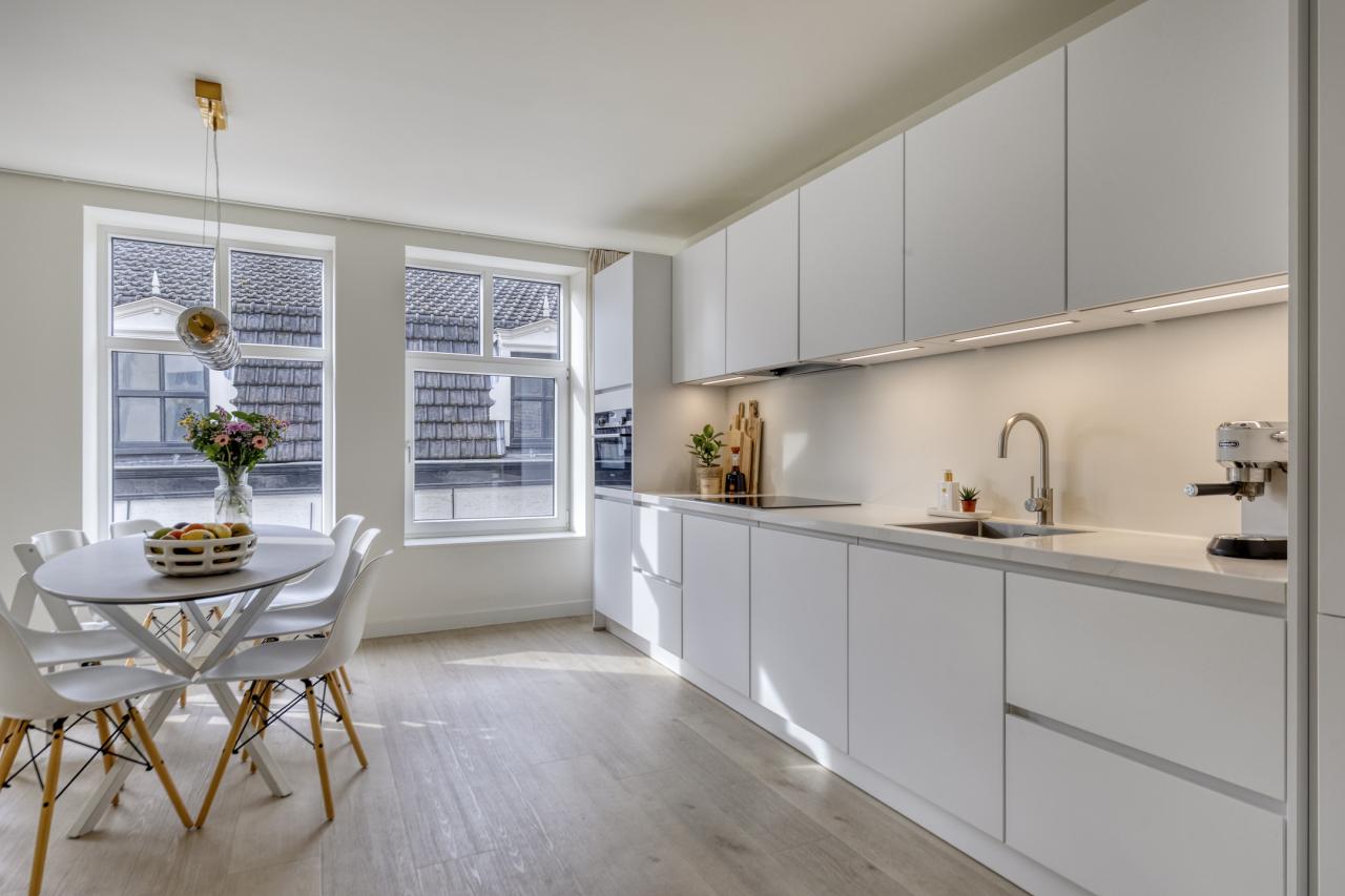 De moderne open keuken is uitgevoerd met luxe inbouwapparatuur en vormt een stijlvol geheel met de woonkamer. Hier leef je met uitzicht op de levendigheid van de Lange Vorststraat, terwijl je binnen geniet van rust en comfort.