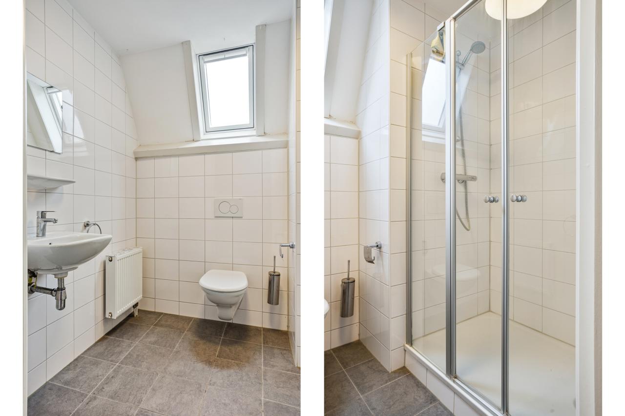 Het appartement beschikt over een keurige badkamer v.v.: toilet, douche en wastafel.
