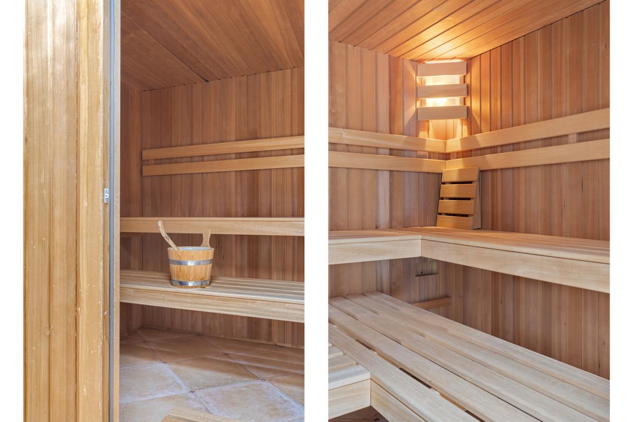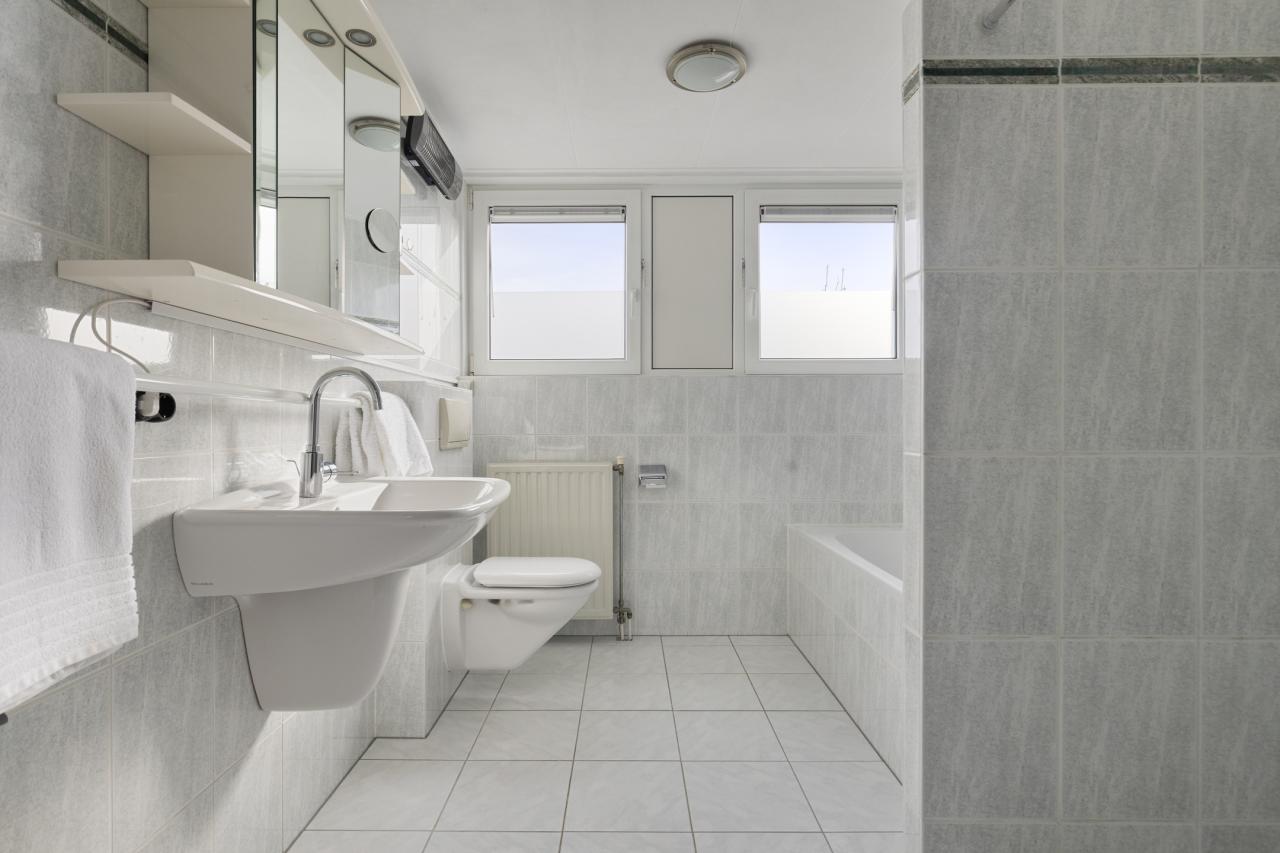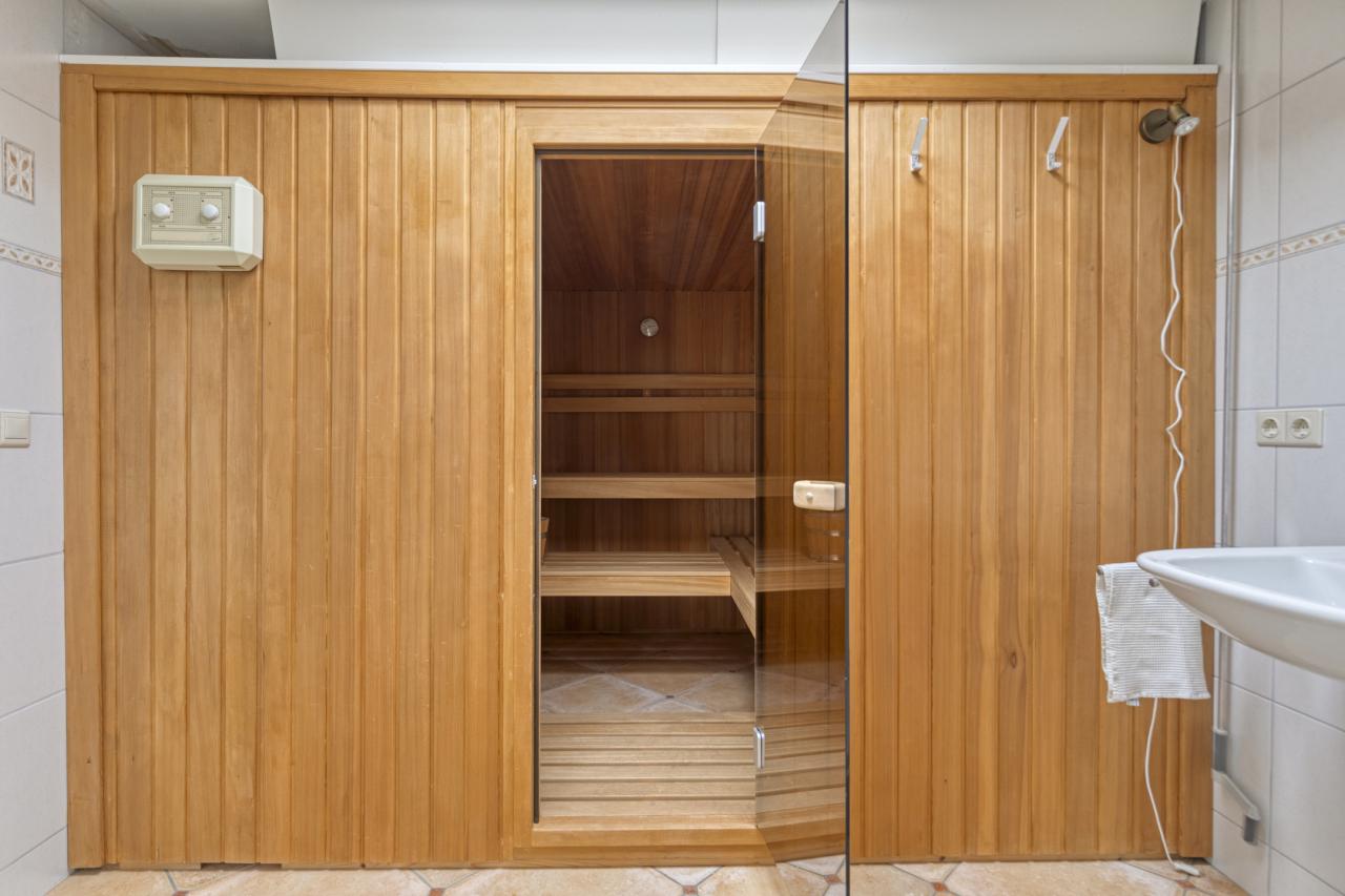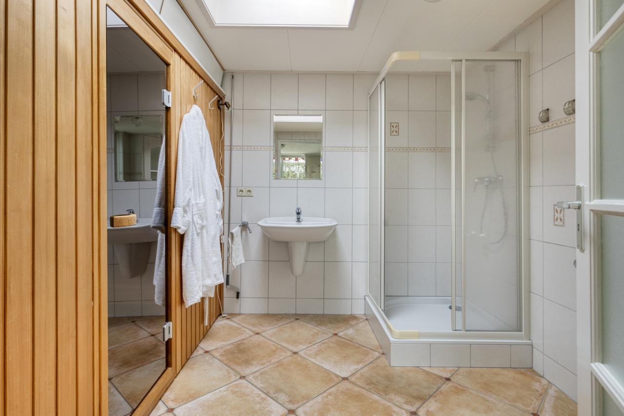 Aansluitend is een separate doucheruimte met sauna aanwezig, een fijne extra voorziening voor ontspanning in eigen huis.