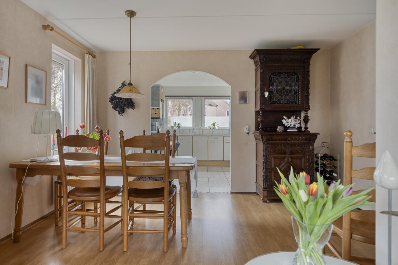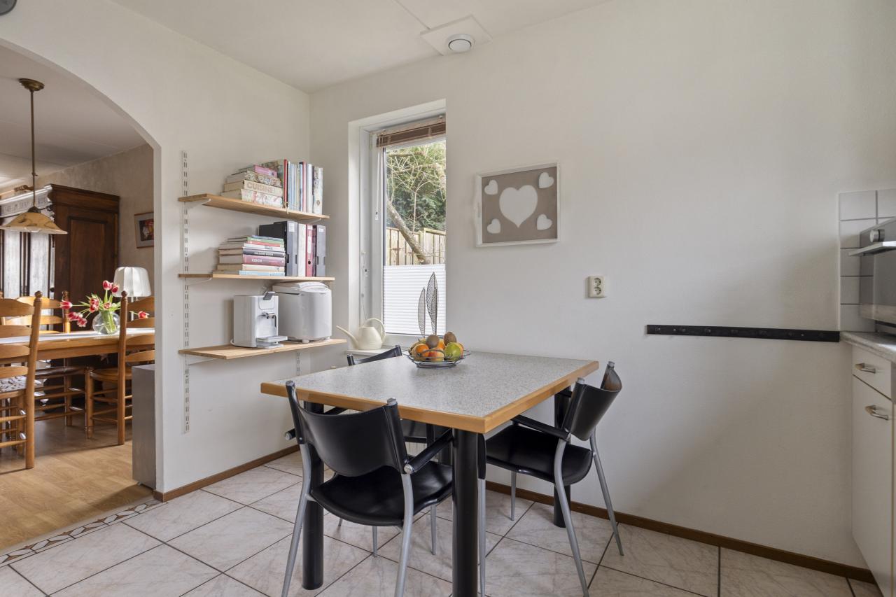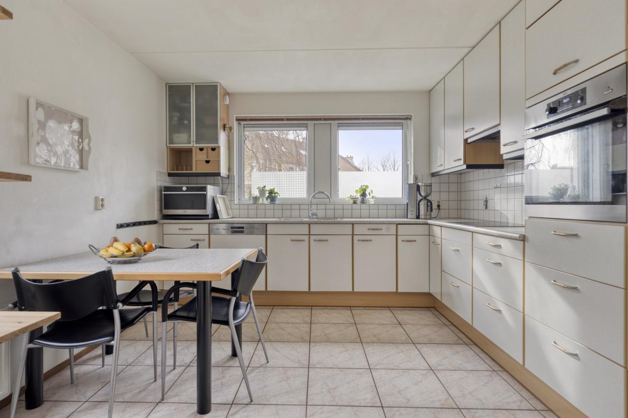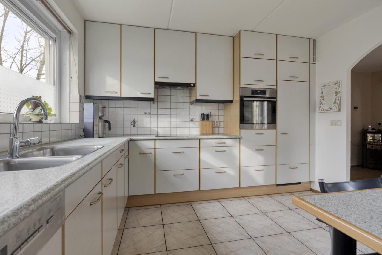 De keuken is aan de voorzijde van de woning gelegen en voorzien van een keramische kookplaat, afzuigkap, oven, koelkast en vaatwasser.