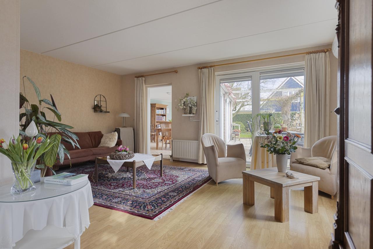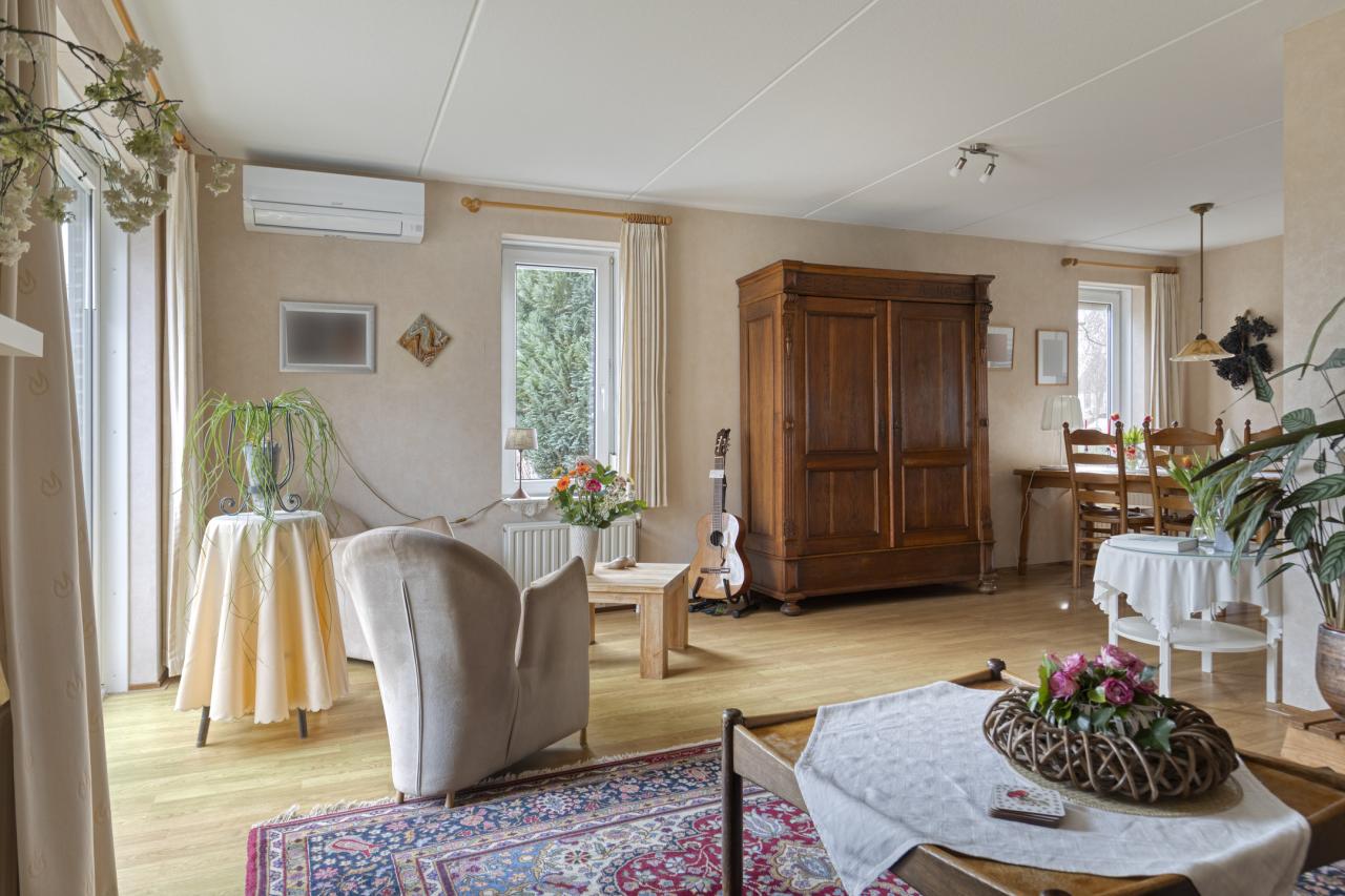 De royale woonkamer is centraal in de woning gesitueerd en valt direct op door de prettige lichtinval dankzij de grote raampartijen. Via de schuifpui staat de woonkamer in directe verbinding met de tuin. Aan de achterzijde bevindt zich de ruime tuinkamer, voorzien van vloerverwarming, van ca. 20 m². Een heerlijke plek om in elk seizoen van het buitenleven te genieten. De uitbouw is in 2000 gerealiseerd en onderheid.