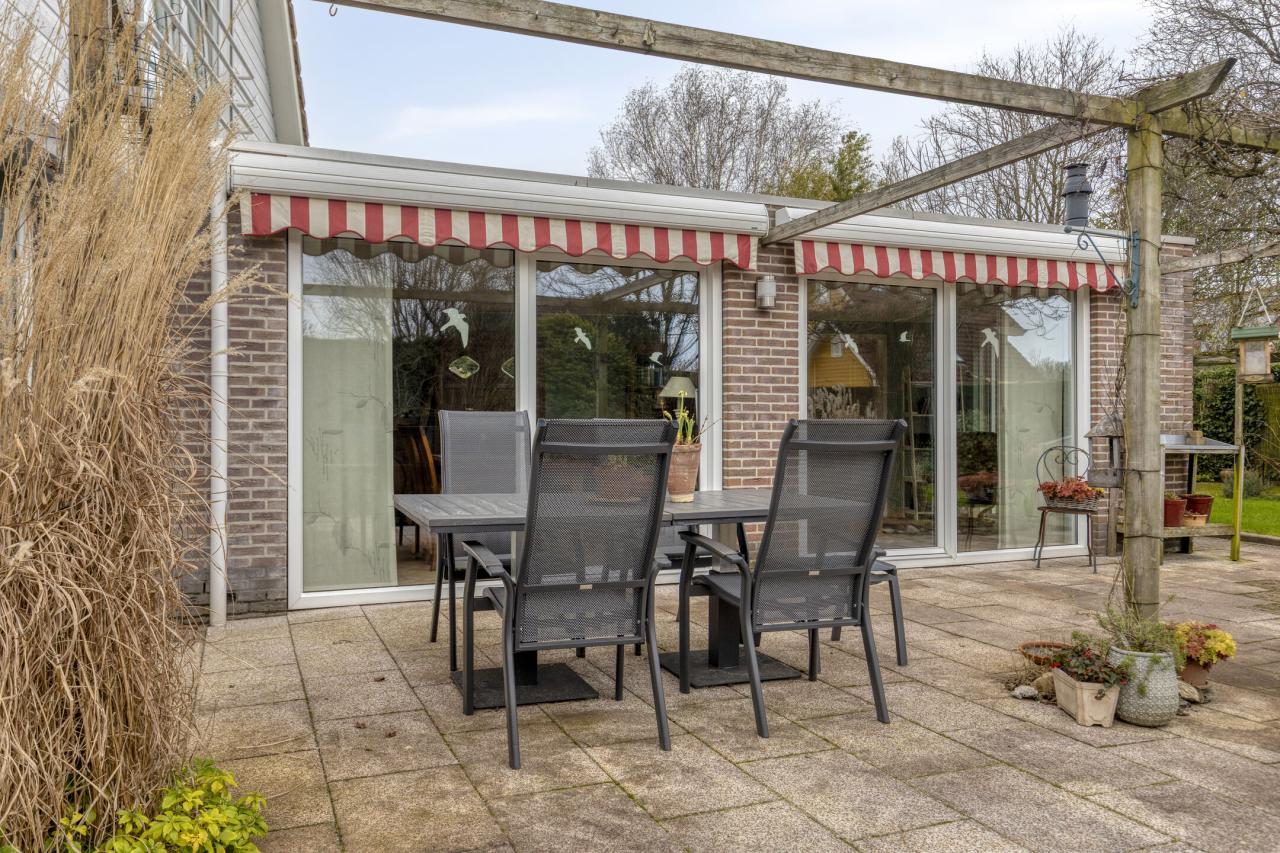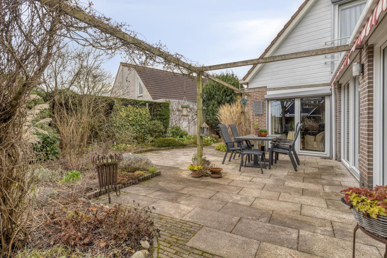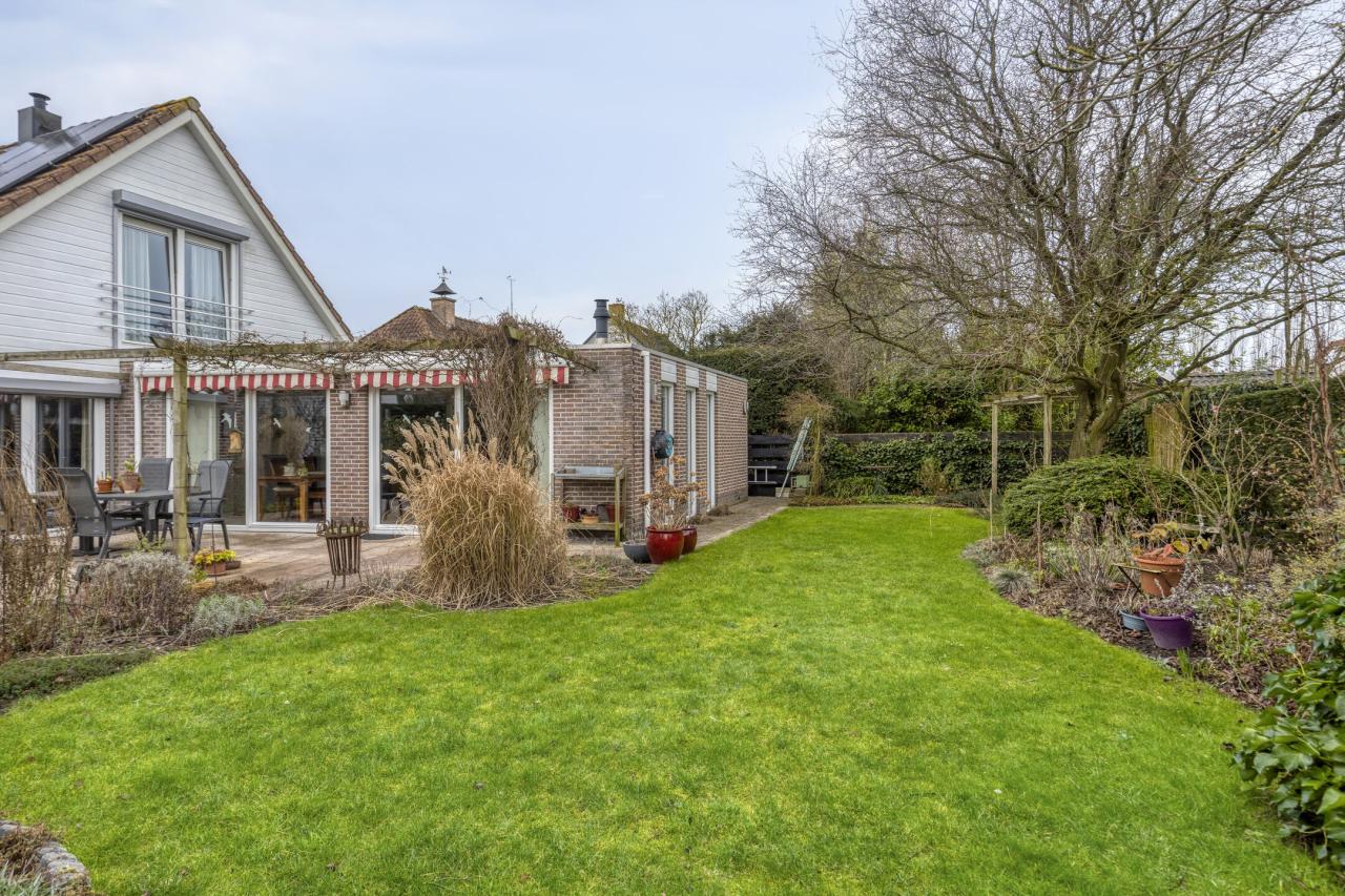 De achtertuin is gelegen op het oosten en heeft een oppervlakte van ca. 110 m². Dankzij de indeling met een royaal terras is er altijd een zonnig of juist schaduwrijk plekje te vinden. De borders met vaste beplanting, groene hagen en een karakteristieke notenboom zorgen voor een sfeervolle en groene uitstraling. In de zomer biedt de boom aangename verkoeling en extra privacy.