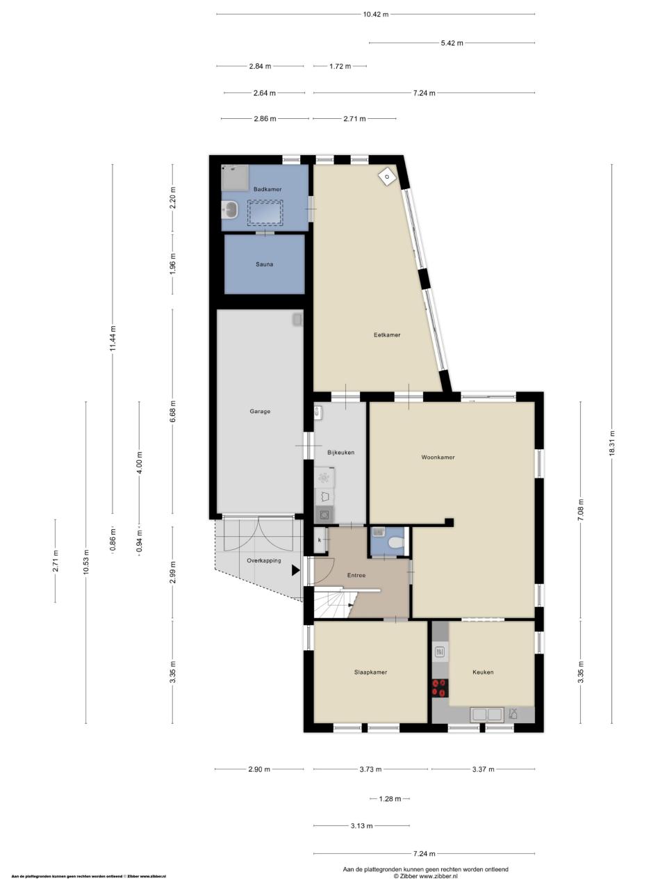 De inpandig bereikbare garage is ca. 18 m² groot. Voor de garage ligt een eigen oprit met parkeergelegenheid.
