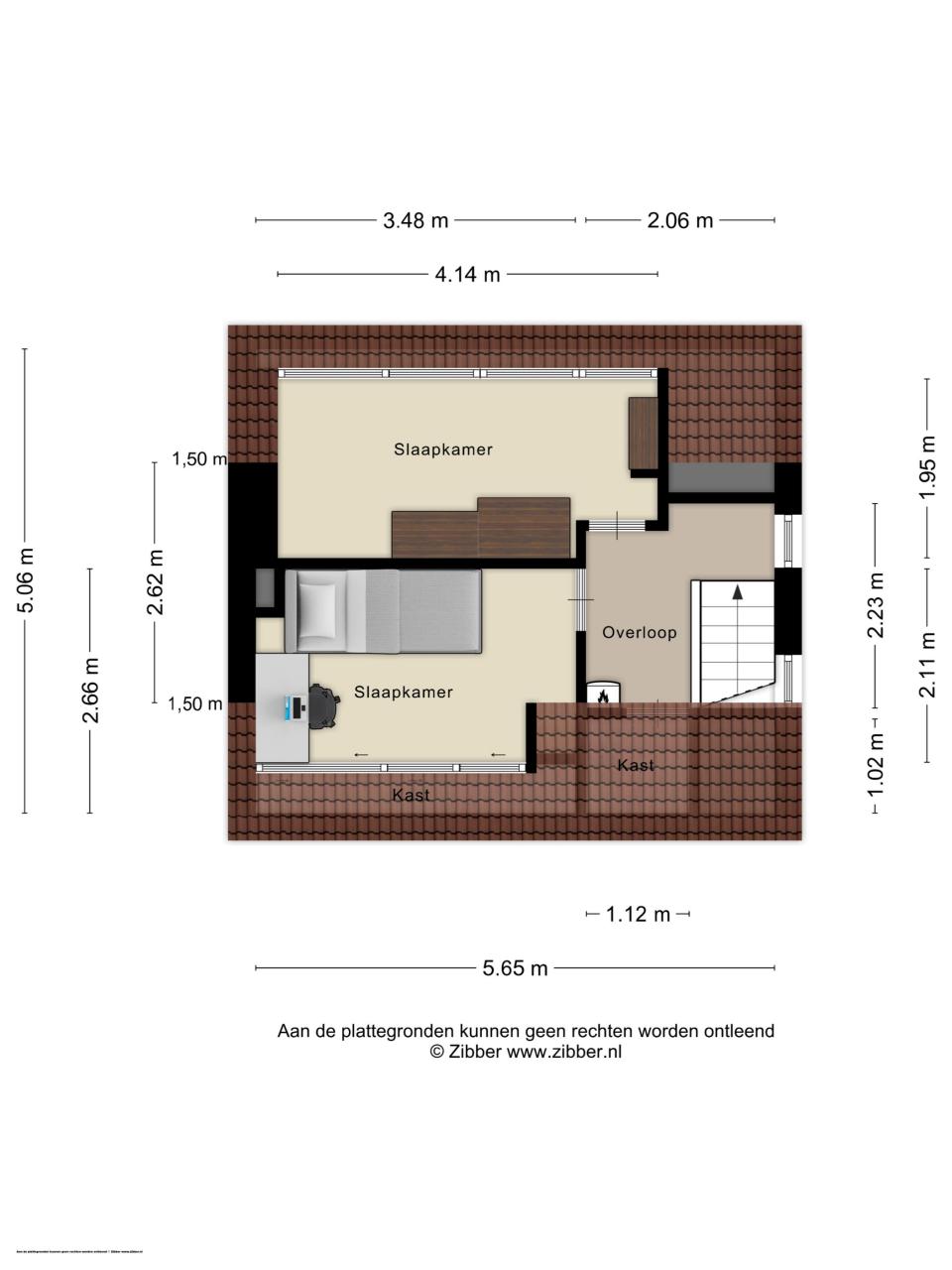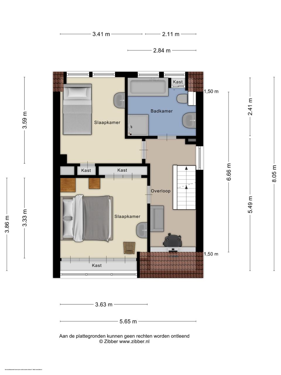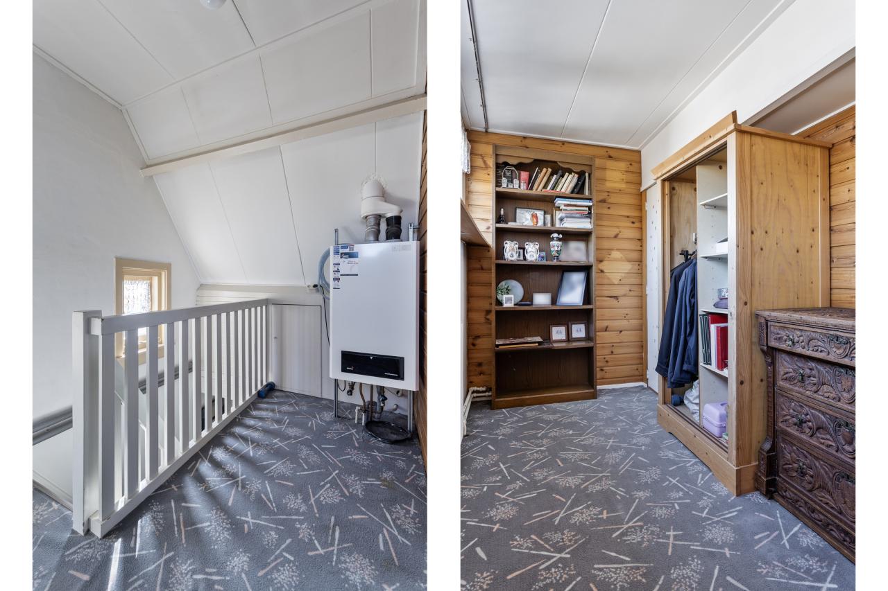 De overloop is royaal en biedt voldoende ruimte voor een thuiswerkplek of kantoor, waardoor u geen slaapkamer hoeft op te offeren. Vanaf de overloop zijn 2 slaapvertrekken en de badkamer toegankelijk. De grootste slaapkamer (ca. 14 m²) aan de voorzijde beschikt over twee vaste kasten en wastafel. Aan de achterzijde is de slaapkamer (ca. 11 m²) voorzien van een vaste kast en wastafel.