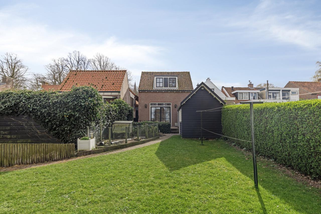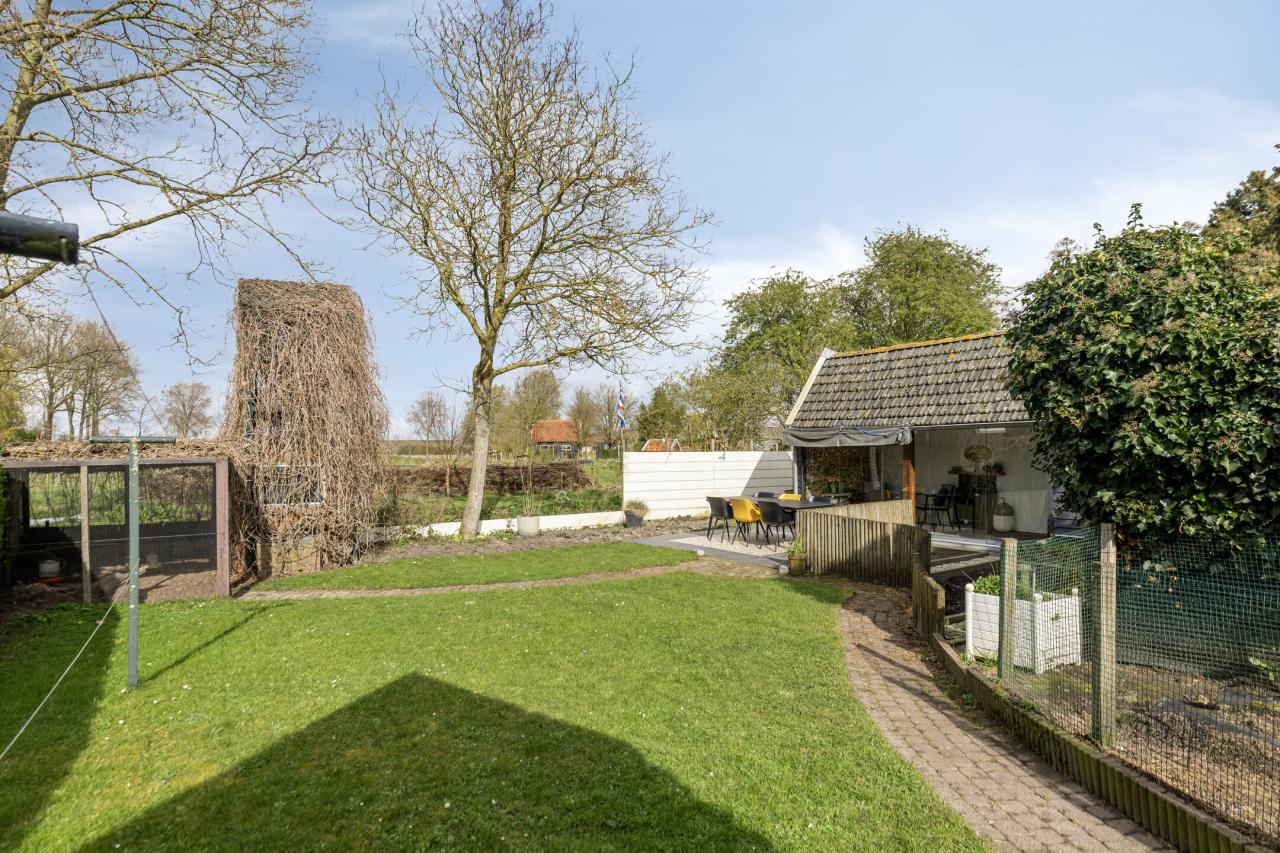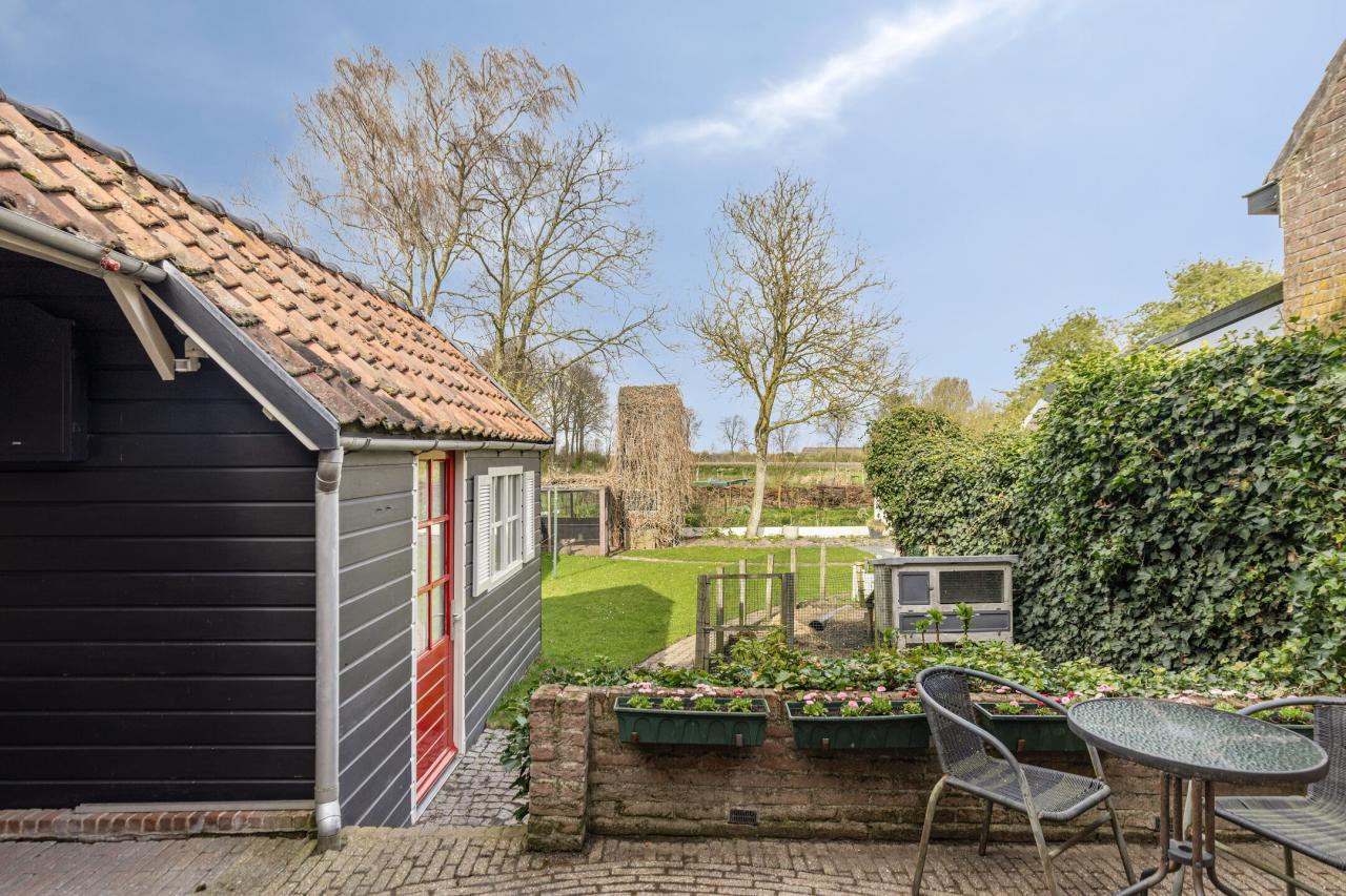 De tuin is zonder twijfel één van de sterke punten van deze woning. Met de royale afmetingen biedt deze volop ruimte en privacy. Ondanks de noordelijke ligging is er door de diepte van de tuin altijd een zonnige plek te vinden. Aan de achterzijde grenst de tuin aan een monumentaal weiland, wat zorgt voor vrij uitzicht en optimale privacy.