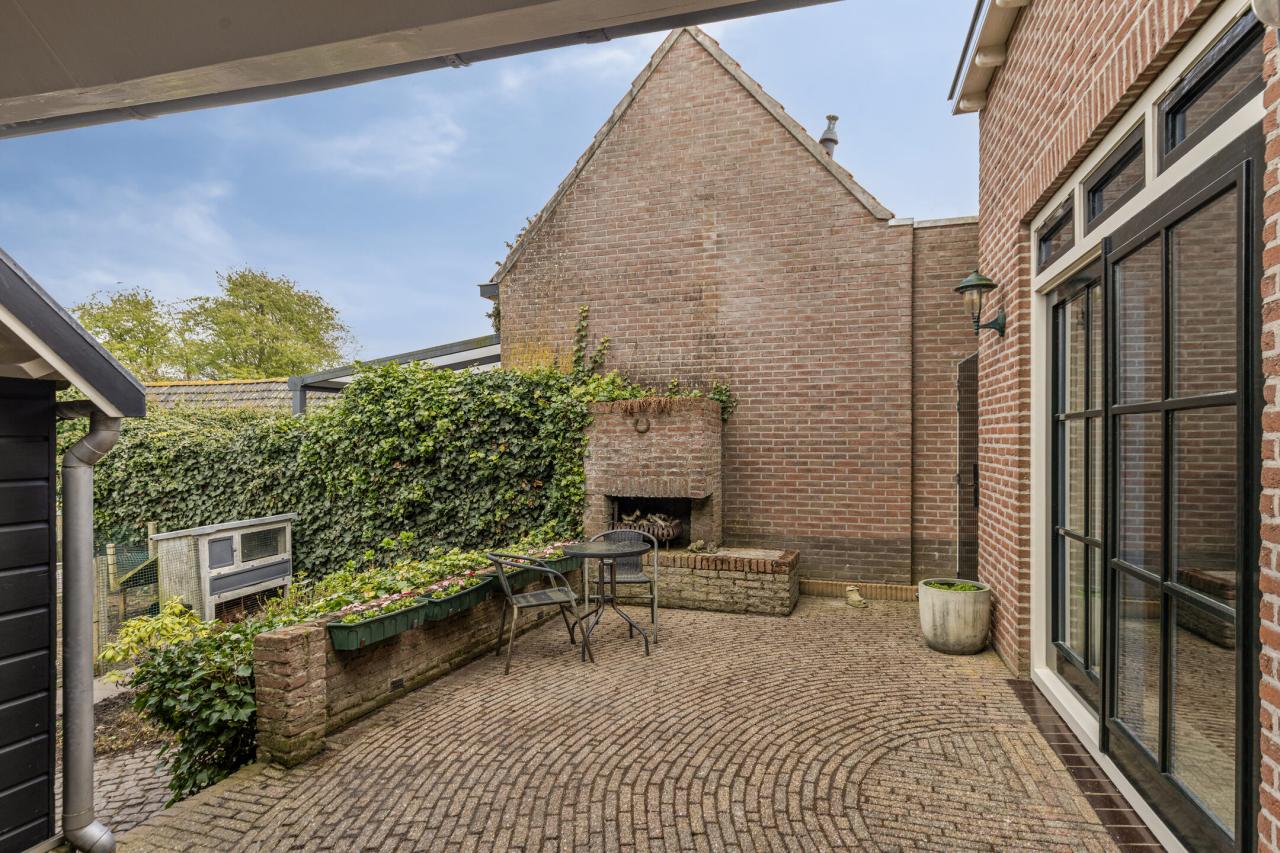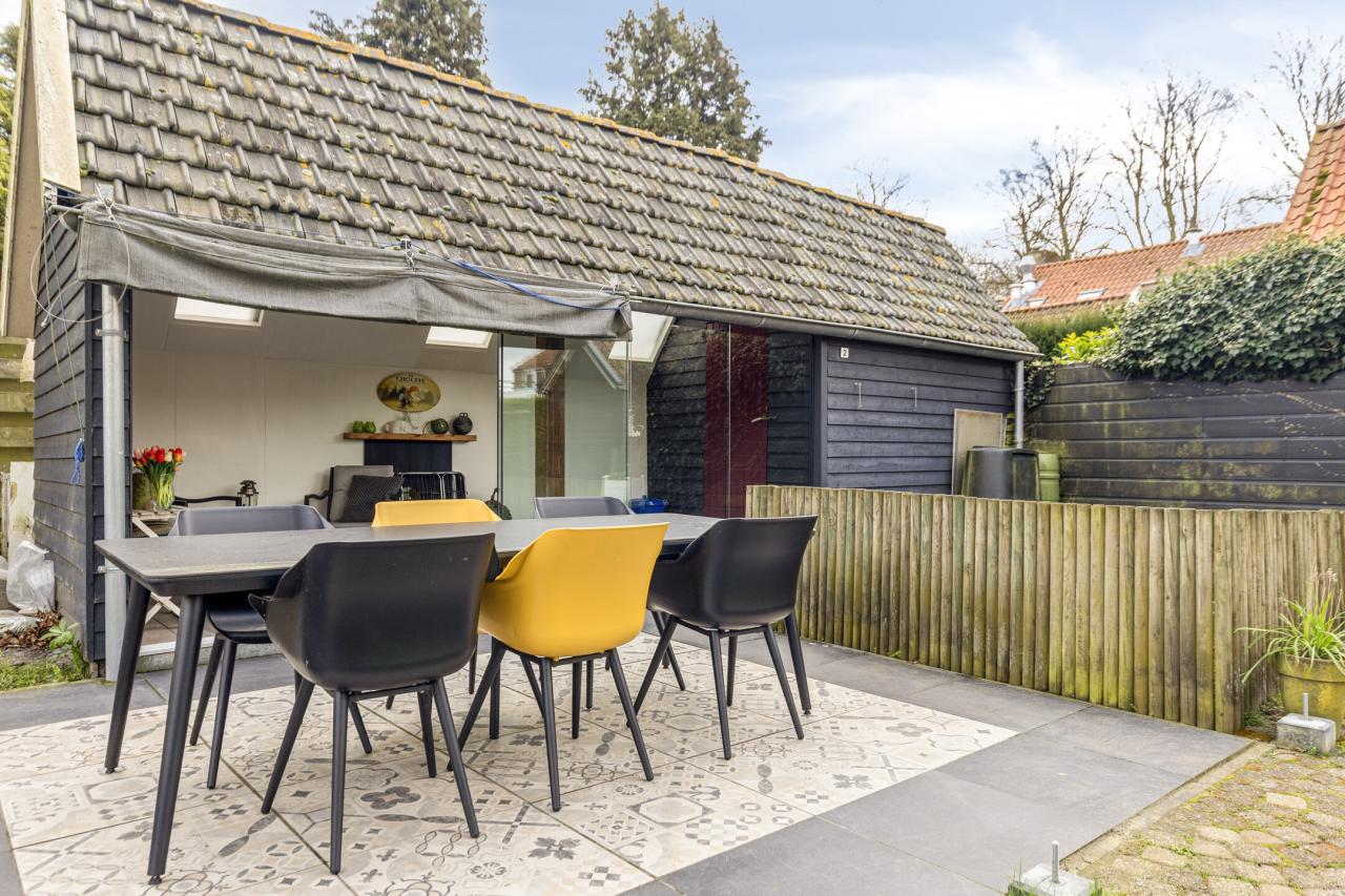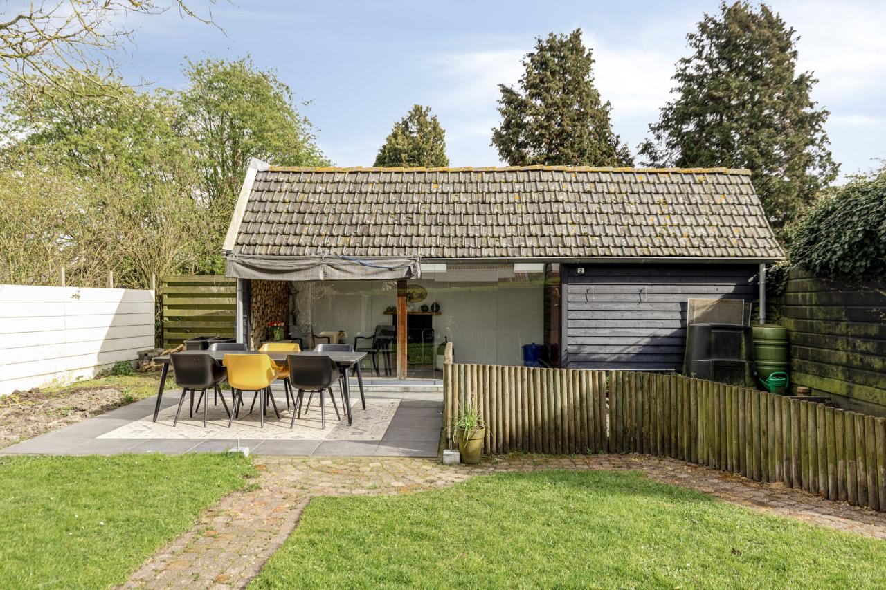 Een deel van de tuin is ingericht als terras, ideaal voor lange zomeravonden. Daarnaast is er een ruime berging met elektra aanwezig. Achter in de tuin bevindt zich een recent gebouwde, sfeervolle tuinkamer in klassieke stijl, een heerlijke plek om het hele jaar door te genieten van het buitenleven.