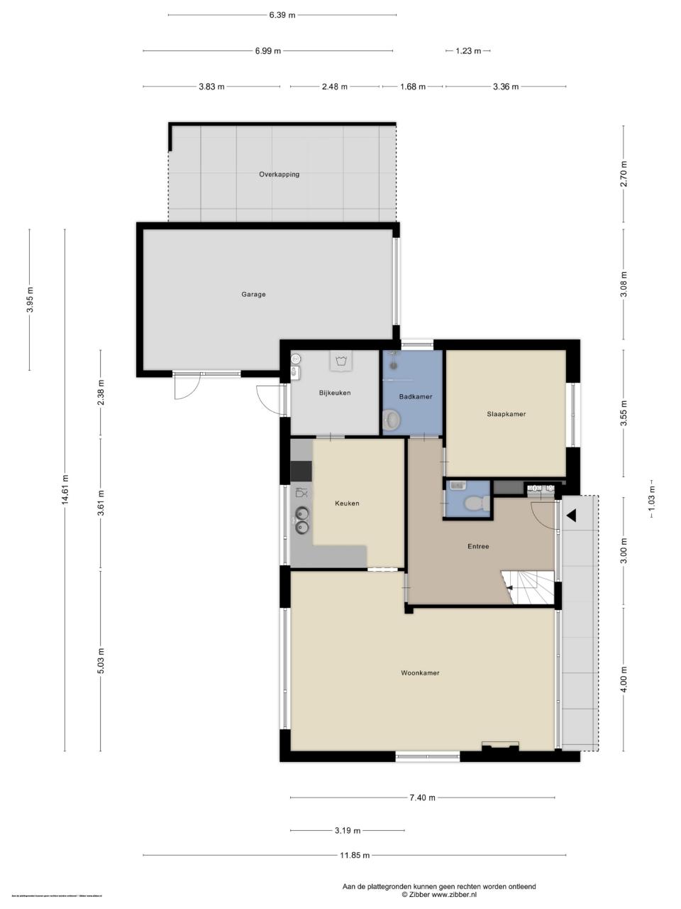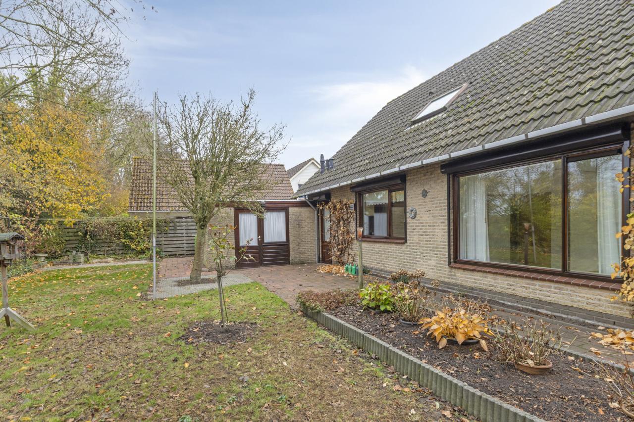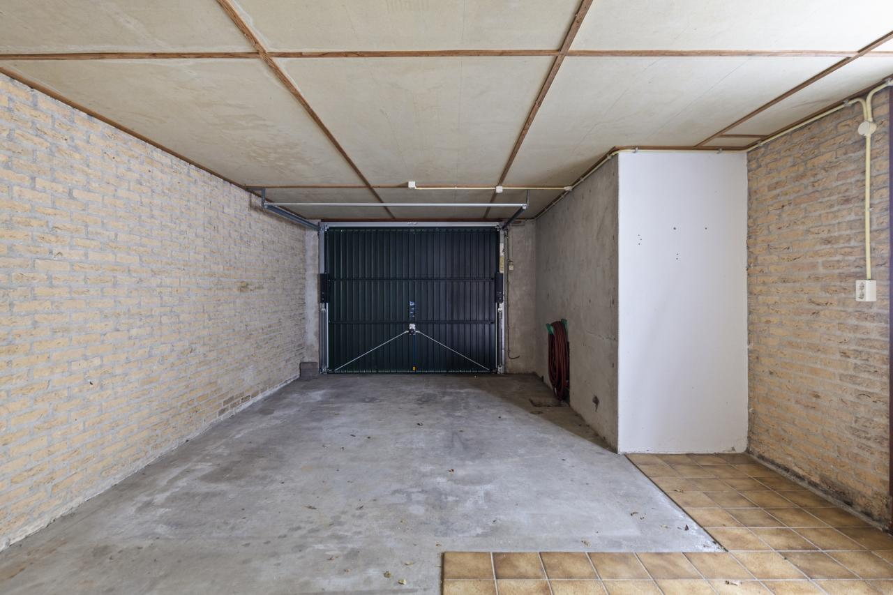De aangebouwde garage is vanuit de tuin bereikbaar.