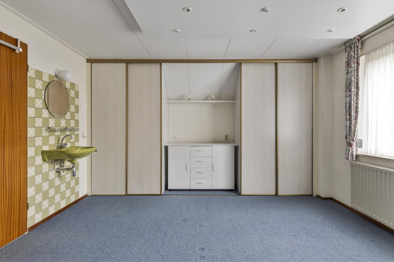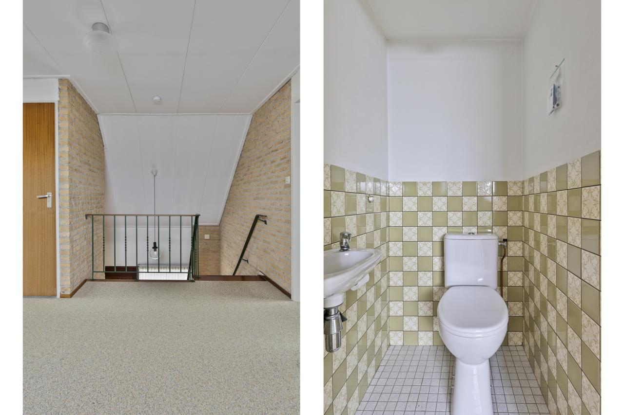 De grote hal met vide is een mooie binnenkomer. In de hal bevinden zich de meterkast, het toilet en de trapopgang. Vanuit de hal heeft u toegang tot de slaapkamer van ca. 3.55 × 3.36 m.