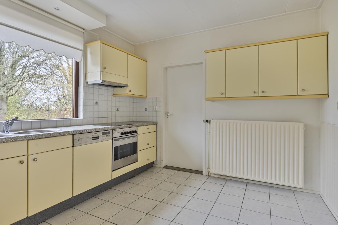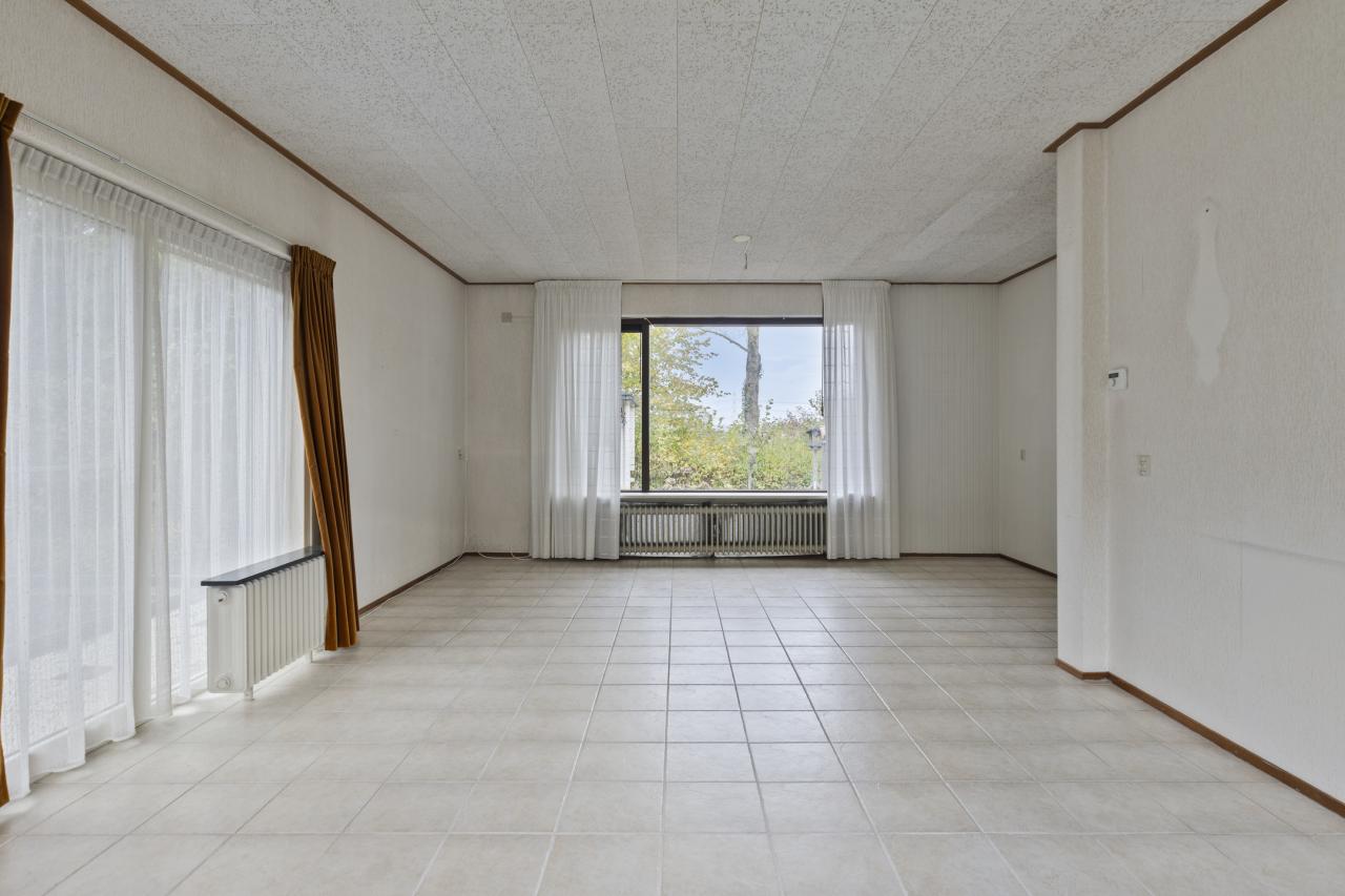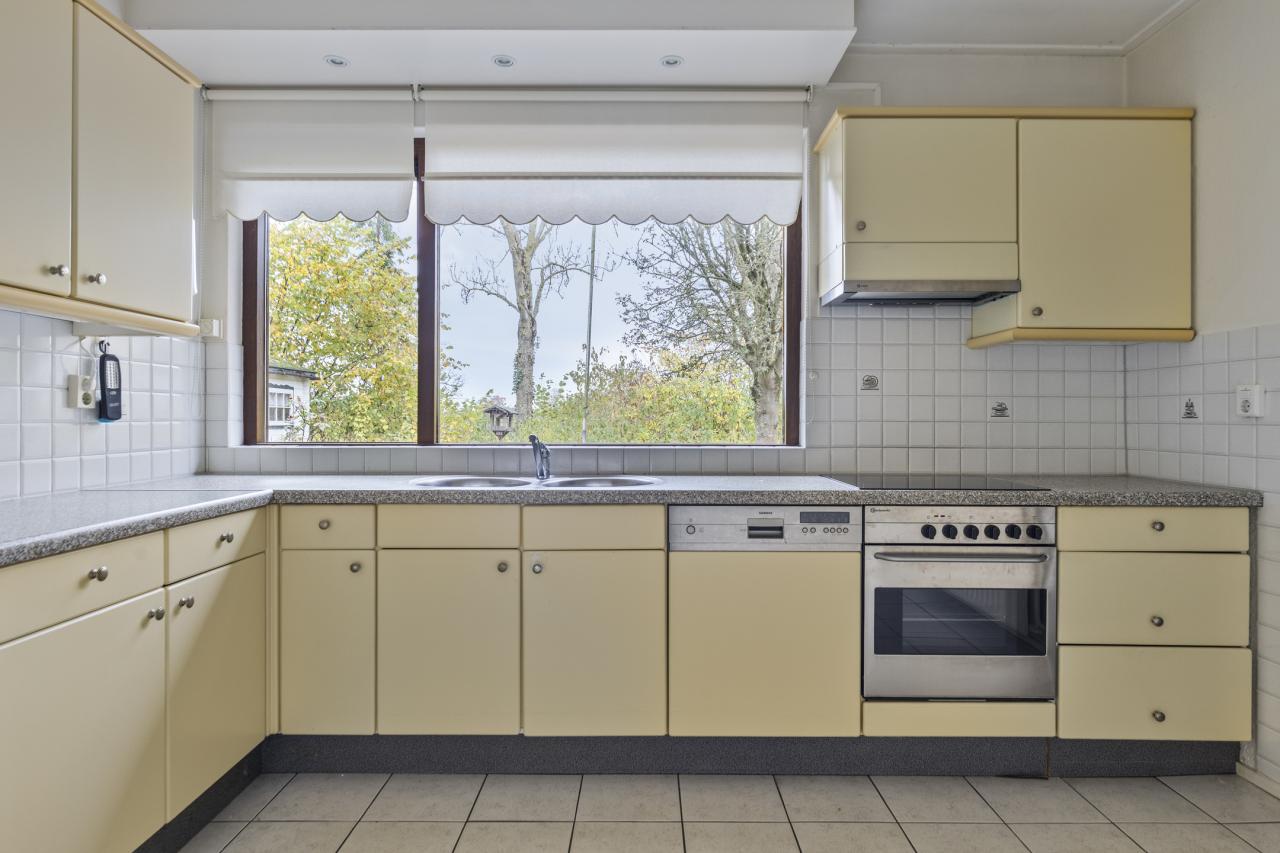 De brede woonkamer biedt zowel aan de voor- als aan de achterzijde mooi zicht op de tuin. Er is genoeg ruimte voor een ruime zithoek en een grote eettafel. Via de schuifpui is er toegang tot de tuin. De keuken wordt door middel van een deur van de woonkamer gescheiden. Ook vanuit de keuken heeft u prettig zicht op de tuin. Vanuit de keuken is de bijkeuken toegankelijk. Hier bevinden zich de aansluitingen voor het witgoed en de cv-opstelling. De bijkeuken biedt tevens toegang tot de tuin.