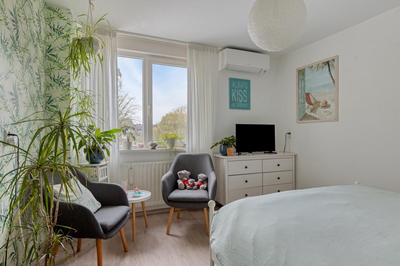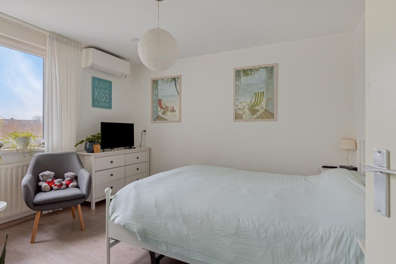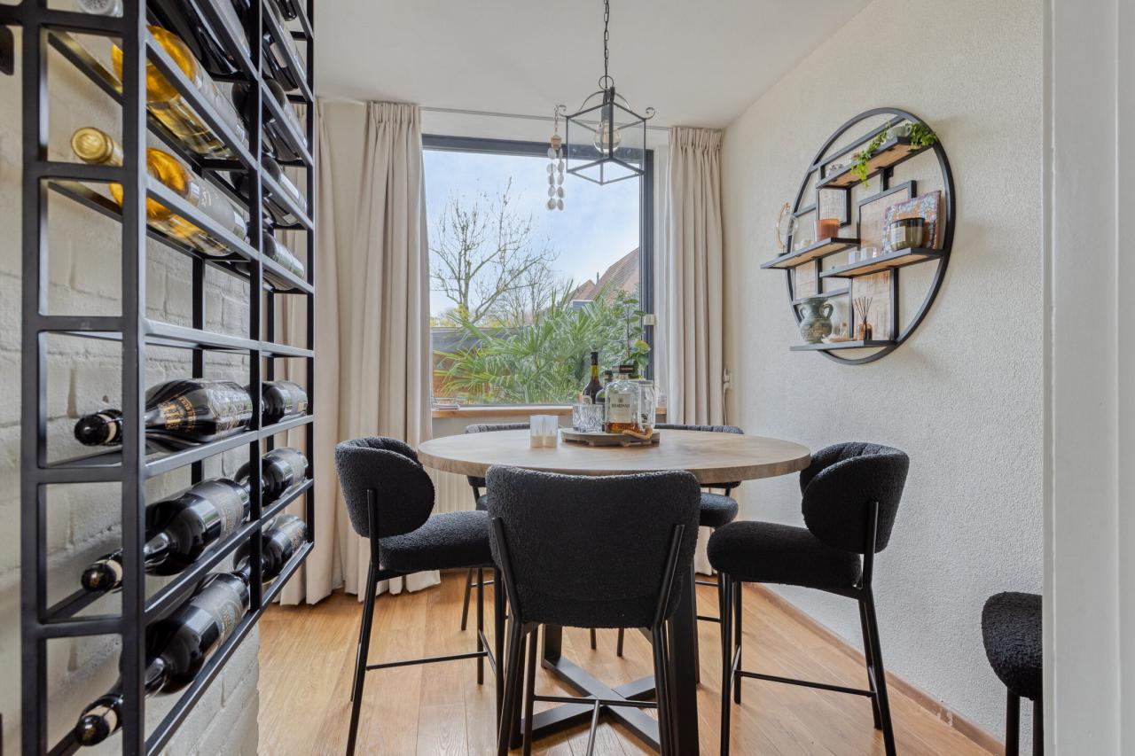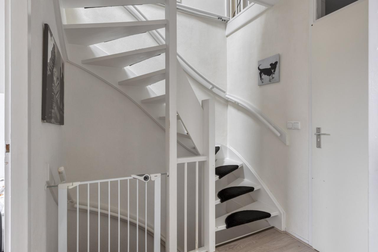 Entree met hal, meterkast en toilet met fonteintje. Lichte woonkamer met praktische trapkast, tuindeur en grote raampartijen met zicht op de tuin. Aan de voorzijde bevindt zich de open keuken, die uitzicht biedt op de parkachtige omgeving. De keuken is netjes en functioneel uitgevoerd en voorzien van een inductiekookplaat, afzuigkap, oven, koelkast, vaatwasser en een composiet werkblad.