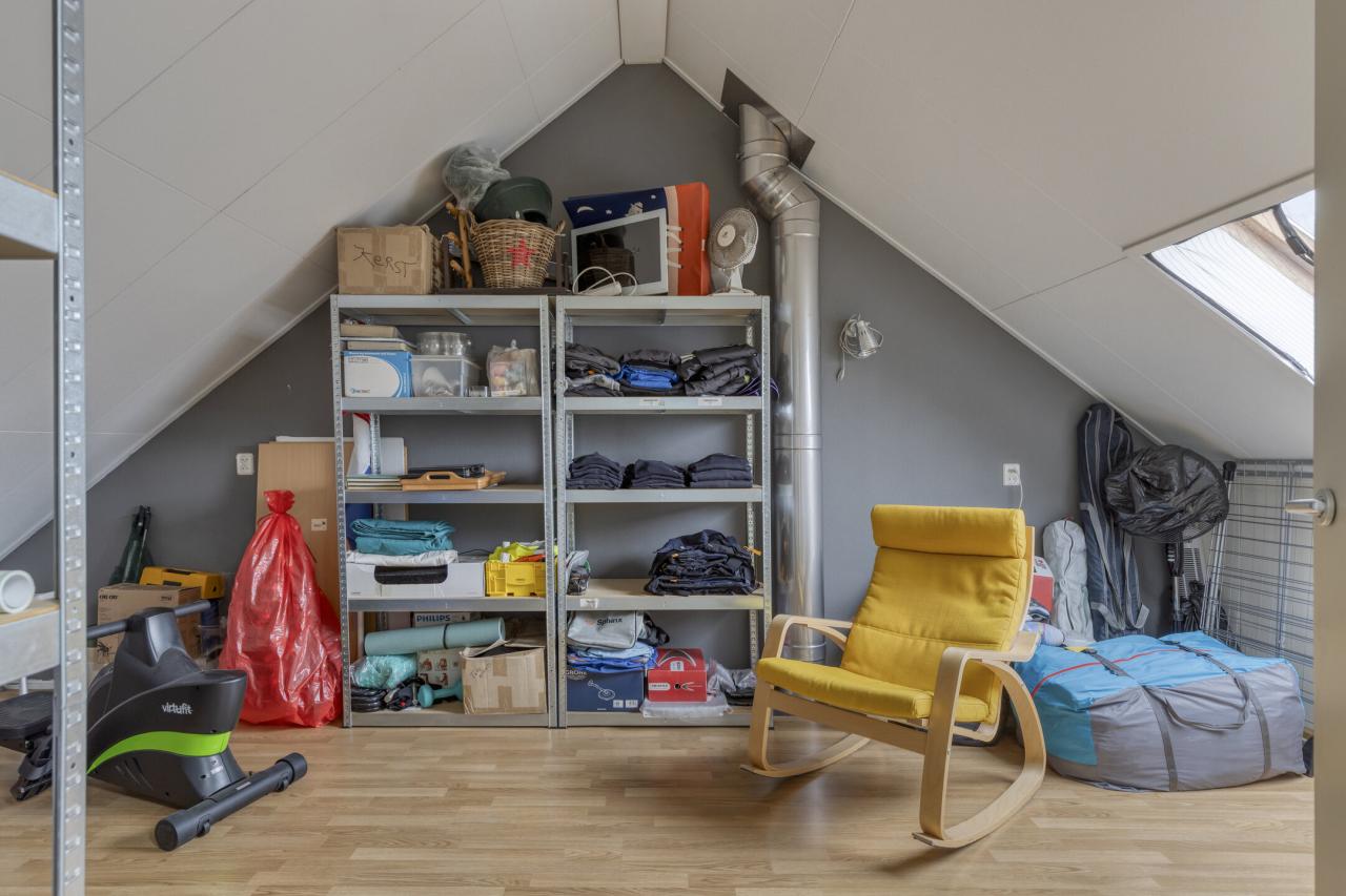 Ook de voortuin is een fijne plek: doordat er geen doorgaand verkeer komt, kun je hier heerlijk van de avondzon genieten. De stenen berging aan de voorzijde van het huis is vanuit de voortuin bereikbaar.