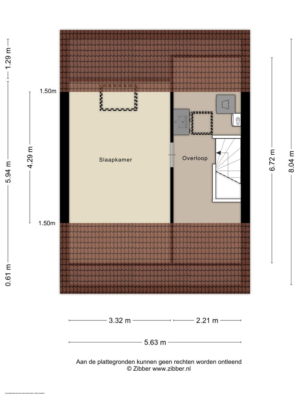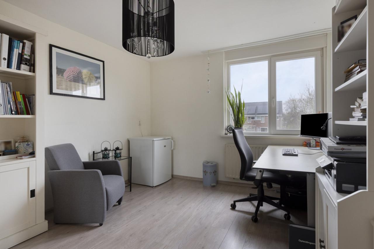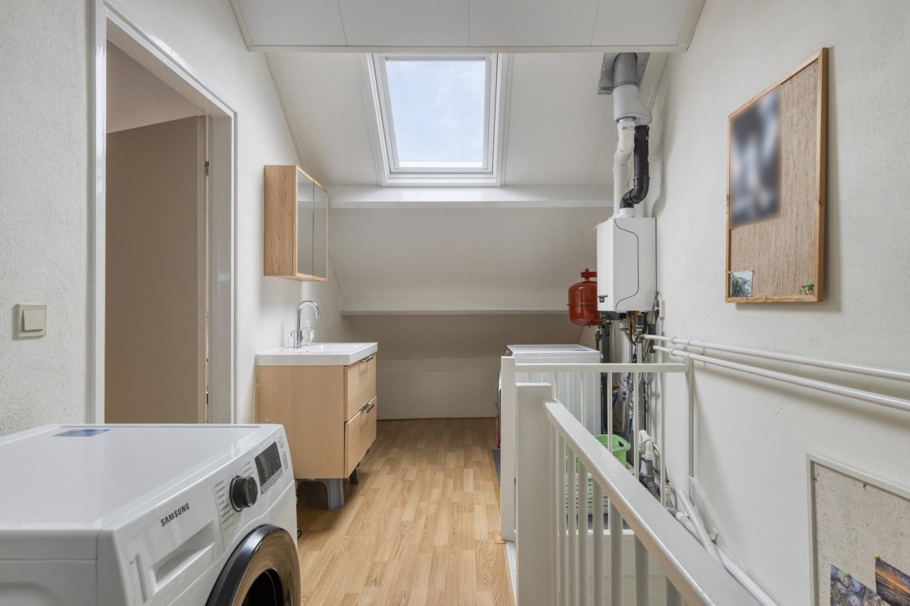 De tweede verdieping is bereikbaar via een vaste trap. Hier bevindt zich de overloop met cv-opstelling, wastafelmeubel met spiegelkast en aansluitingen voor wasmachine en droger. De ruime vierde slaapkamer is voorzien van een dakraam en verwarming en meet circa 4.30 × 3.30 m (op 1,50 m-lijn).