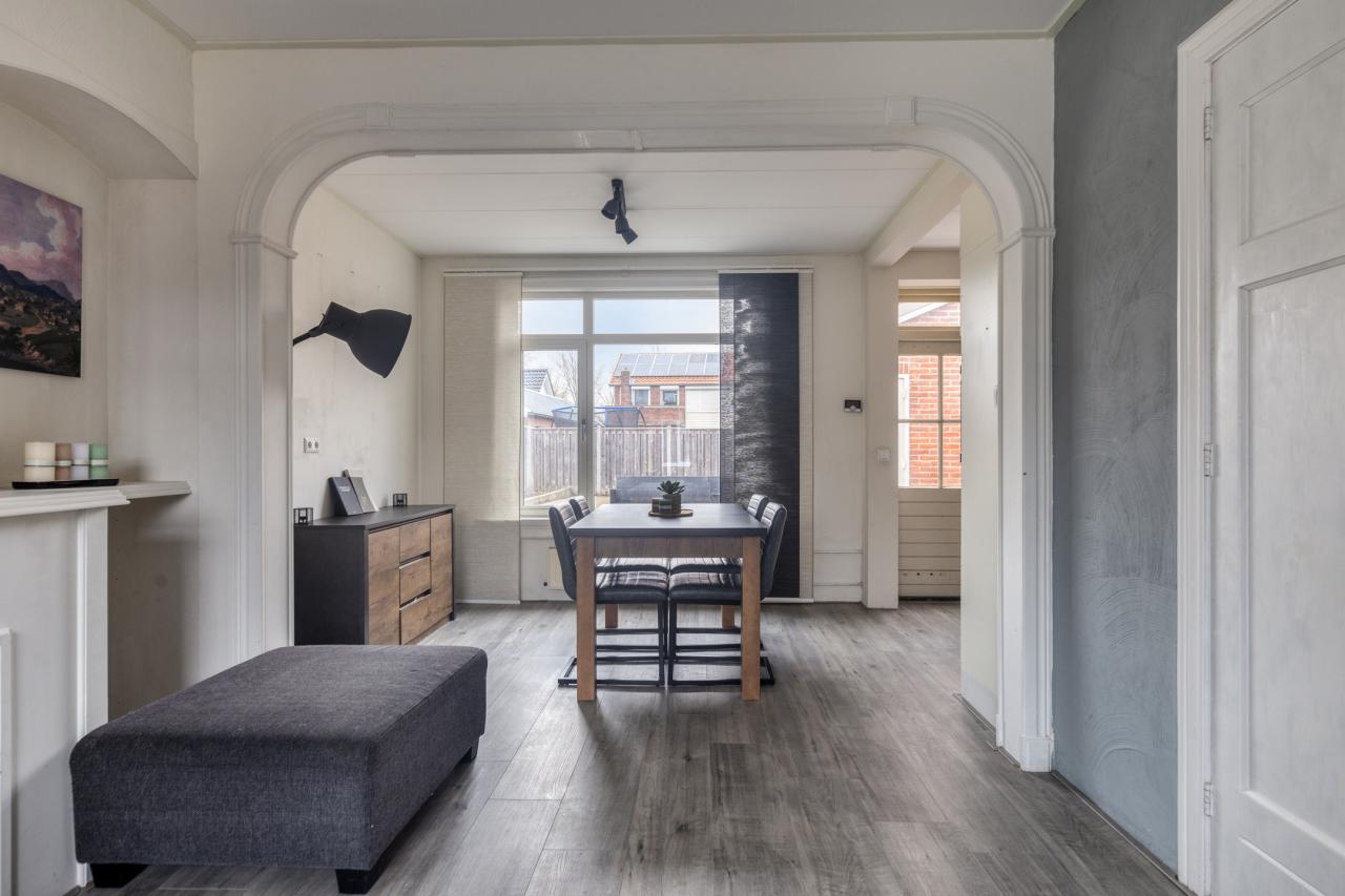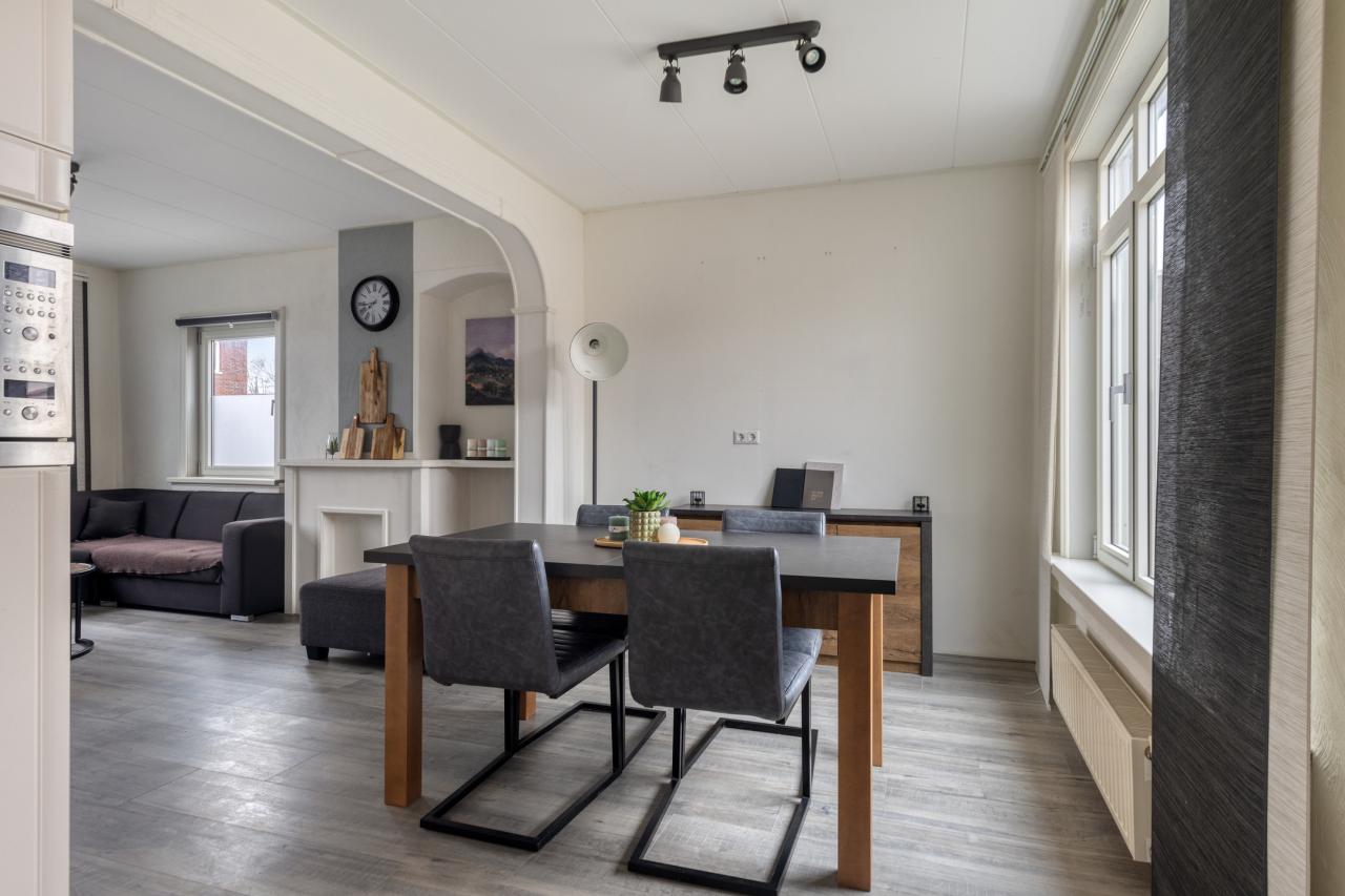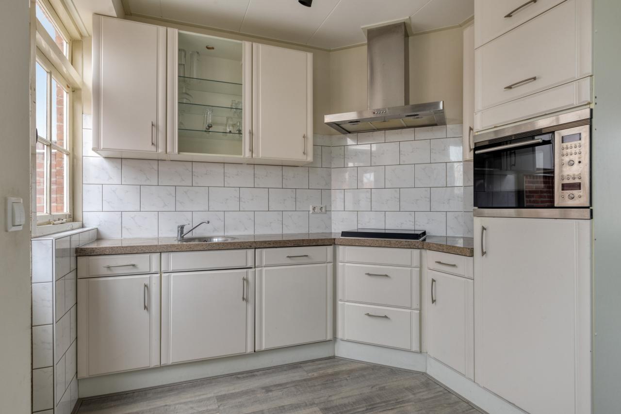 De woonkamer staat in open verbinding met de keuken, wat zorgt voor een open en betrokken leefruimte. De keuken is praktisch ingedeeld en biedt toegang tot de ruime bijkeuken. De bijkeuken beschikt over een wasmachine aansluiting en achterdeur naar de tuin. De inpandig bereikbare berging is ideaal voor voorraad, fietsen of hobbyspullen.