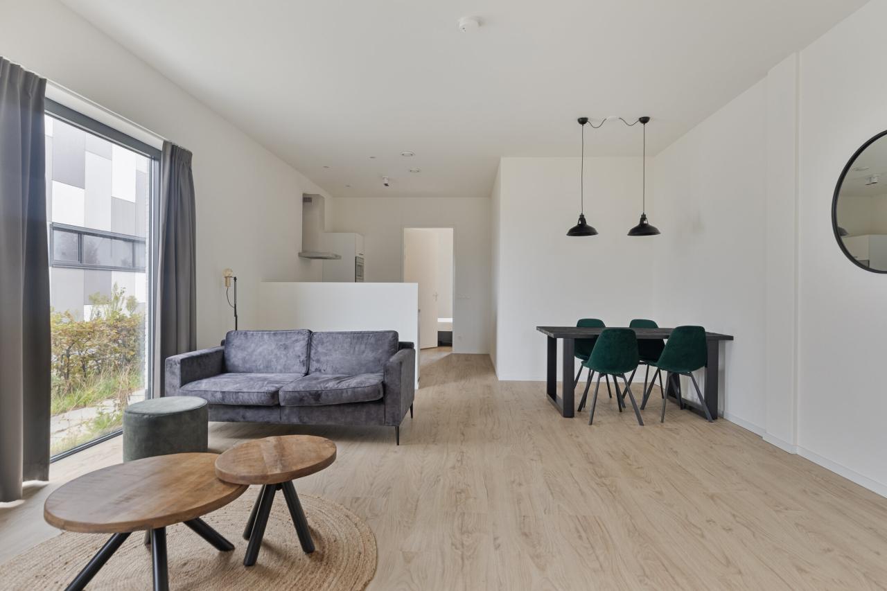 De woonkamer is voorzien van grote raampartijen aan de zijkant en een open keukenopstelling. De moderne keuken is voorzien van: vaatwasser, koelkast, afzuigkap, combi magnetron en inductiekookplaat.