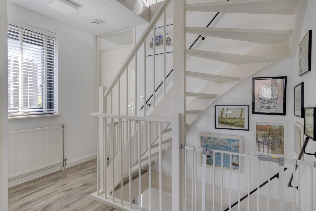 Op de 1e etage is een ruime overloop. De hoofdslaapkamer is aan de voorkant gesitueerd. Deze kamer is met ca. 18 m2 zeer royaal. Er is een vaste kastenwand en airconditioning. De badkamer is in 2020 gerealiseerd en heeft een eigentijdse uitstraling met fraai tegelwerk, een ligbad wastafelmeubel, toilet, en inloopdouche.