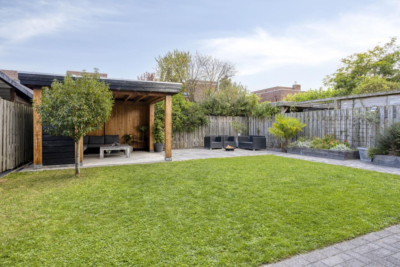 De achtertuin is gelegen op het noordoosten en biedt een prettige bezonning gedurende de dag. Via de vrije achterom bereikt u eenvoudig de straat. Achterin de tuin staat een overkapping met verlichting, ideaal om ook in de avonduren buiten te zitten.