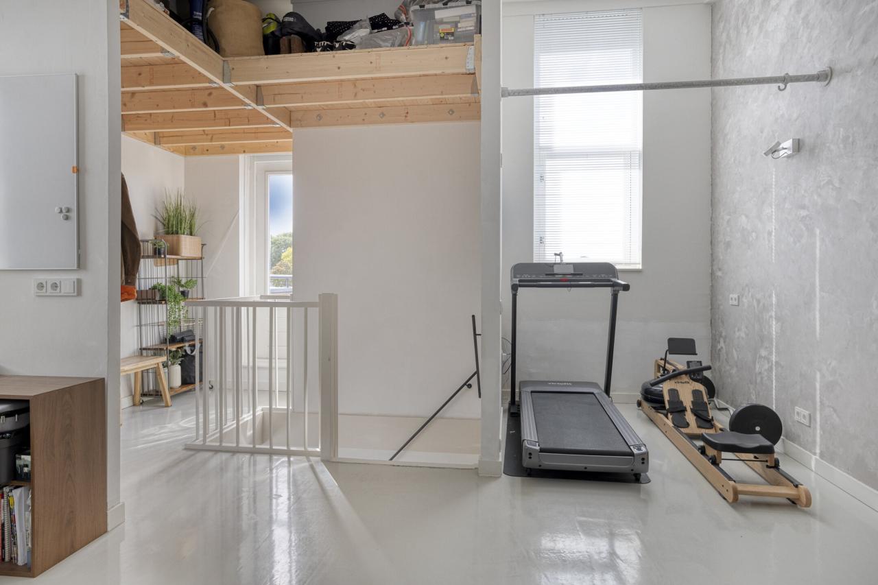 Via de vaste trap komen we in de grote multifunctionele ruimte met cv-opstelling en wasmachine aansluiting. Er is een deur naar het heerlijke dakterras met avondzon. De zolderverdieping biedt veel bergruimte met een diepe kastenwand en een vide. Momenteel wordt deze ruimte gebruikt als fitnessruimte en thuiswerkplek. Er kunnen relatief eenvoudig volwaardige slaapkamers worden gerealiseerd.