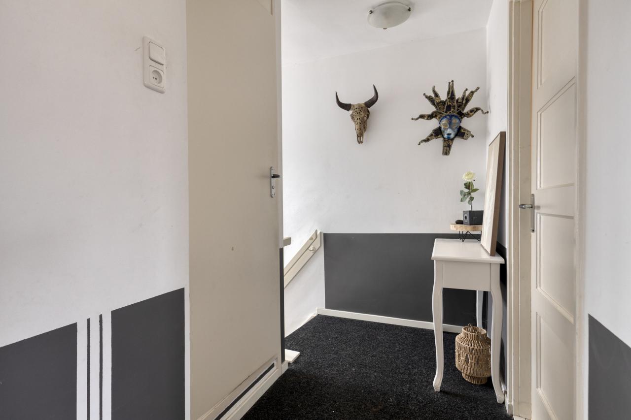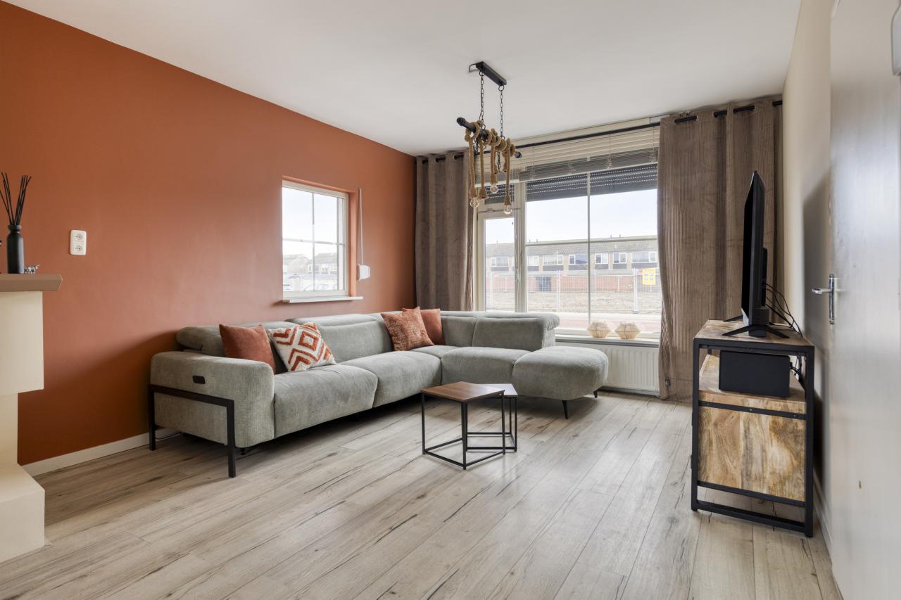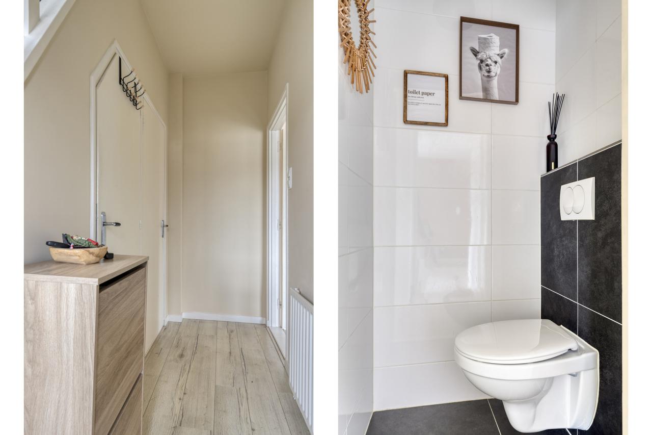 Je betreedt de woning via de centraal gelegen hal met meterkast, toiletruimte en trapopgang. Vanuit de hal loop je door naar de gezellige en ruime woonkamer, waar het aangename daglicht direct opvalt. De woonkamer biedt een prettig uitzicht op zowel de straatzijde als de achtertuin en vormt een fijne plek om samen te komen.