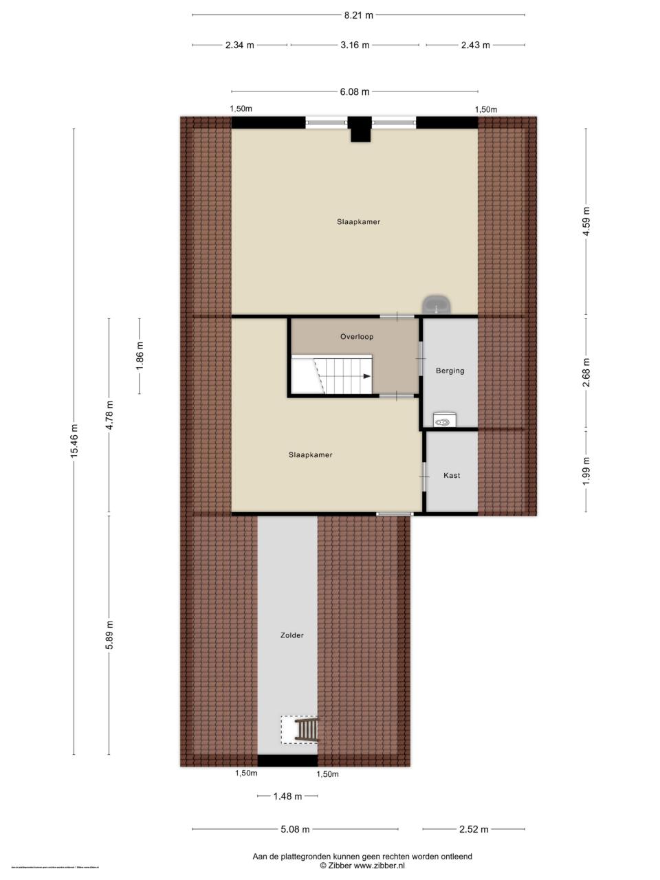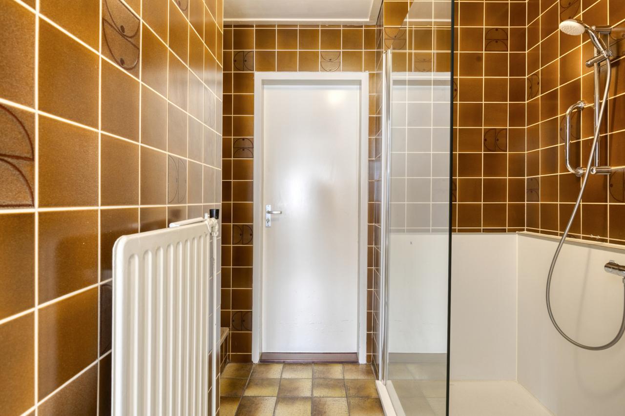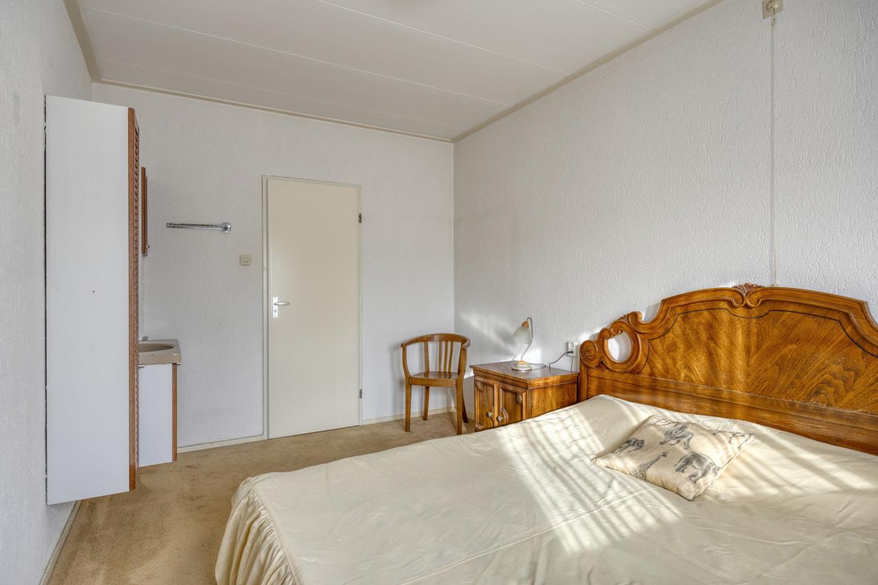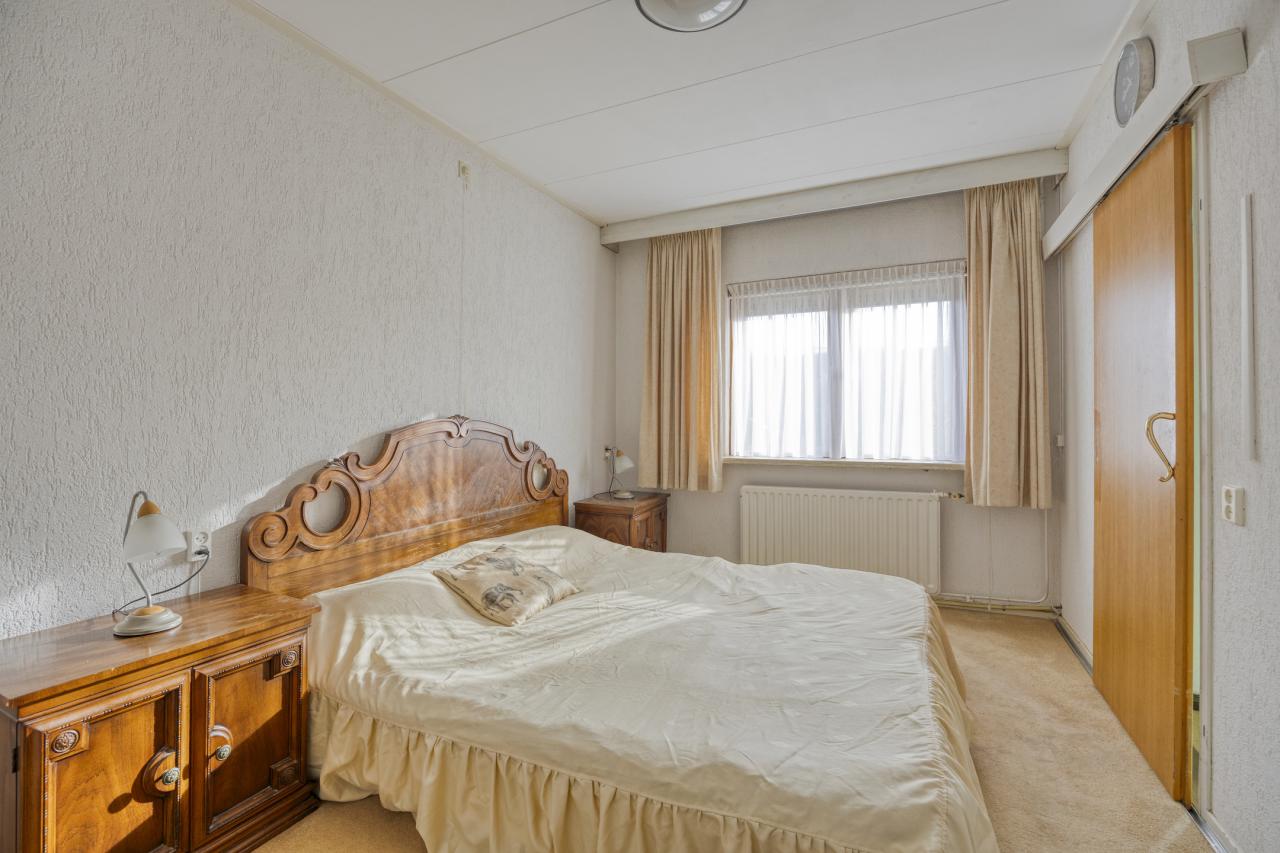 Via de vaste trap bereikt u de overloop met bergruimte en cv-opstelling. De grootste slaapkamer heeft een vloeroppervlak van maar liefst 27 m² (gemeten op 1,50 m-lijn) en kan eenvoudig worden gesplitst in twee kamers. De tweede slaapkamer (ca. 15 m²) is eveneens ruim en voorzien van een vaste kast.