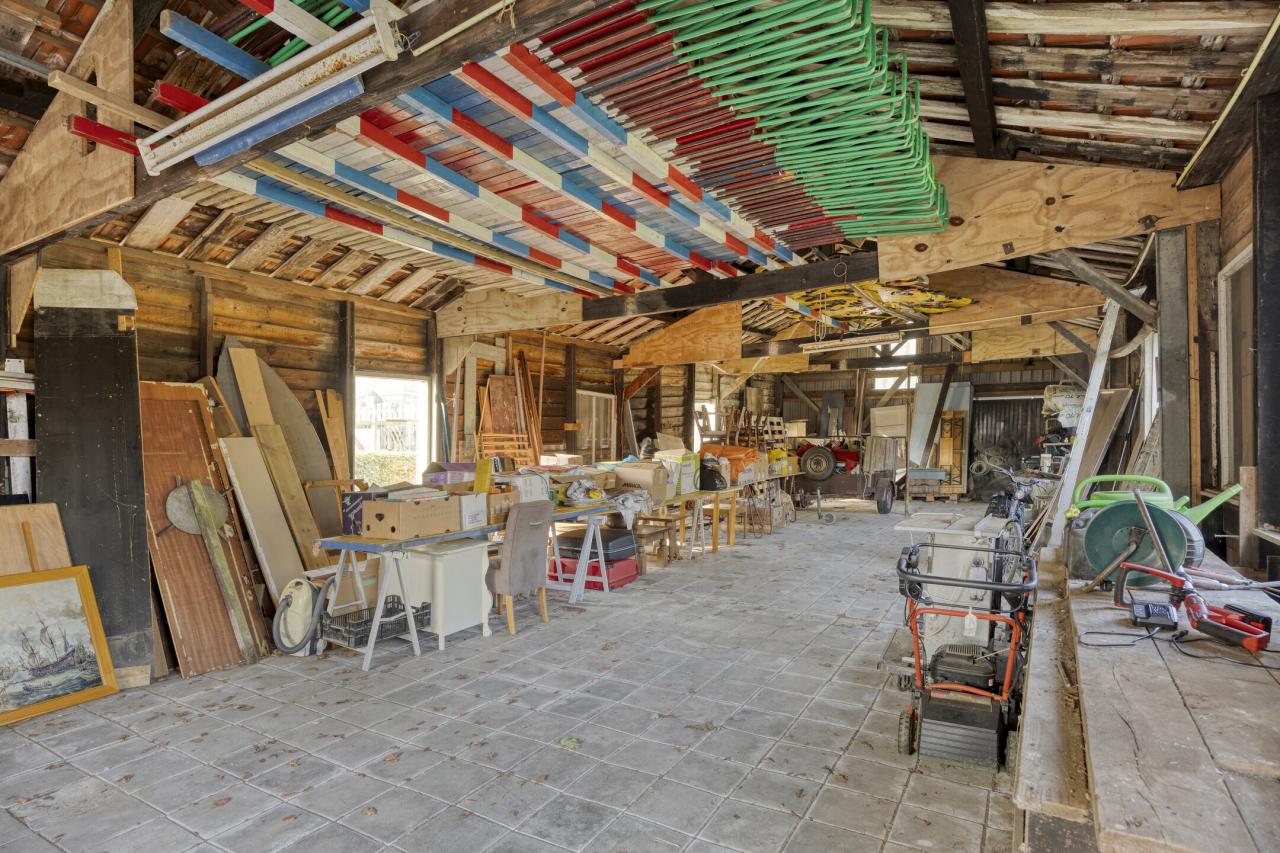 De vrijstaande loods van circa 18 x 7 meter beschikt over elektriciteit en biedt tal van gebruiksmogelijkheden. Ideaal voor de doe-het-zelver, autoliefhebber of iemand met een kleinschalig bedrijf aan huis.