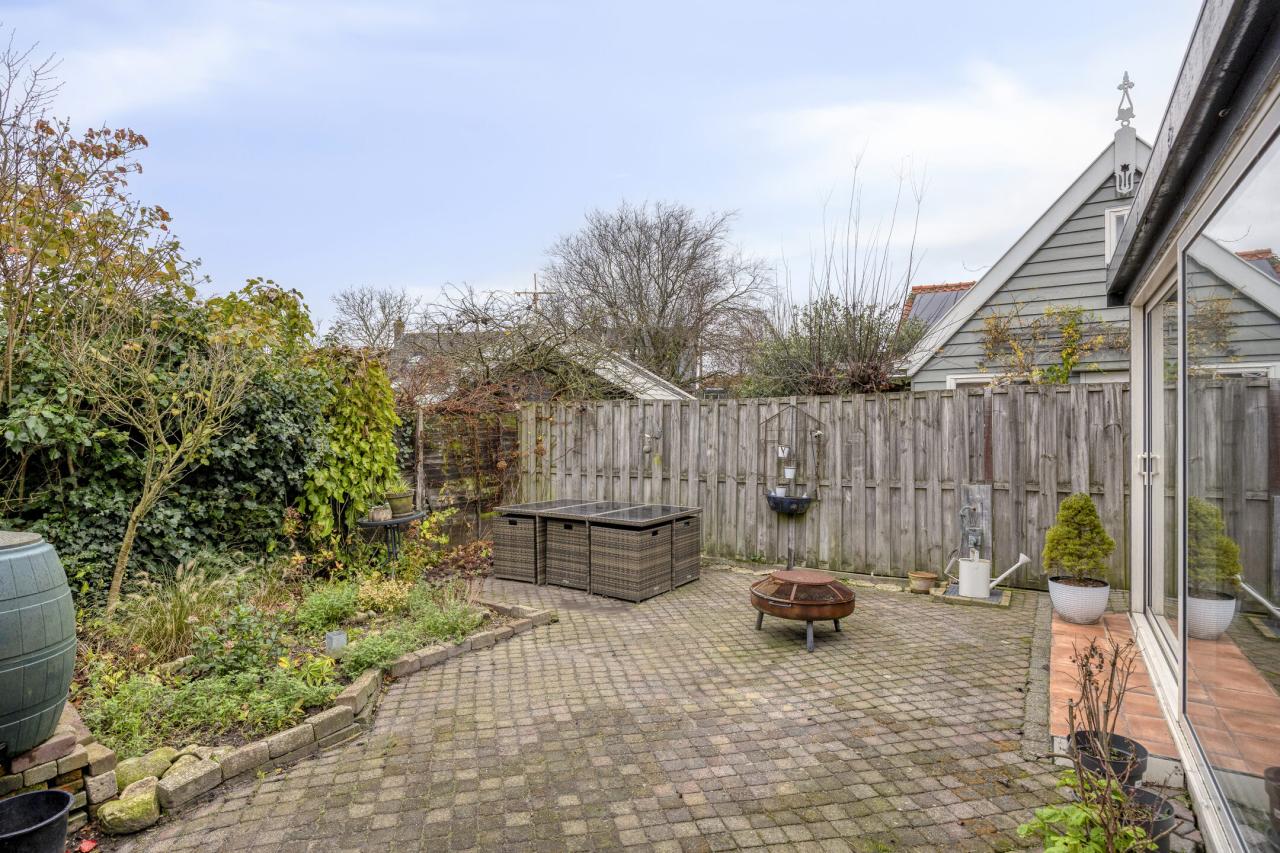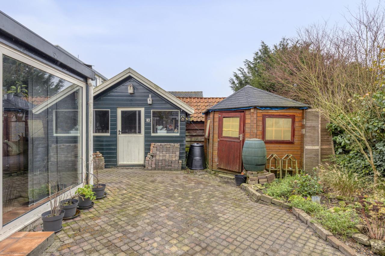 De omsloten achtertuin is via een pad langs de woning bereikbaar. De tuin is grotendeels bestraat en voorzien van twee houten bergingen. De ligging zorgt voor veel privacy en de bezonning is goed, waardoor je hier al snel buiten kunt zitten.