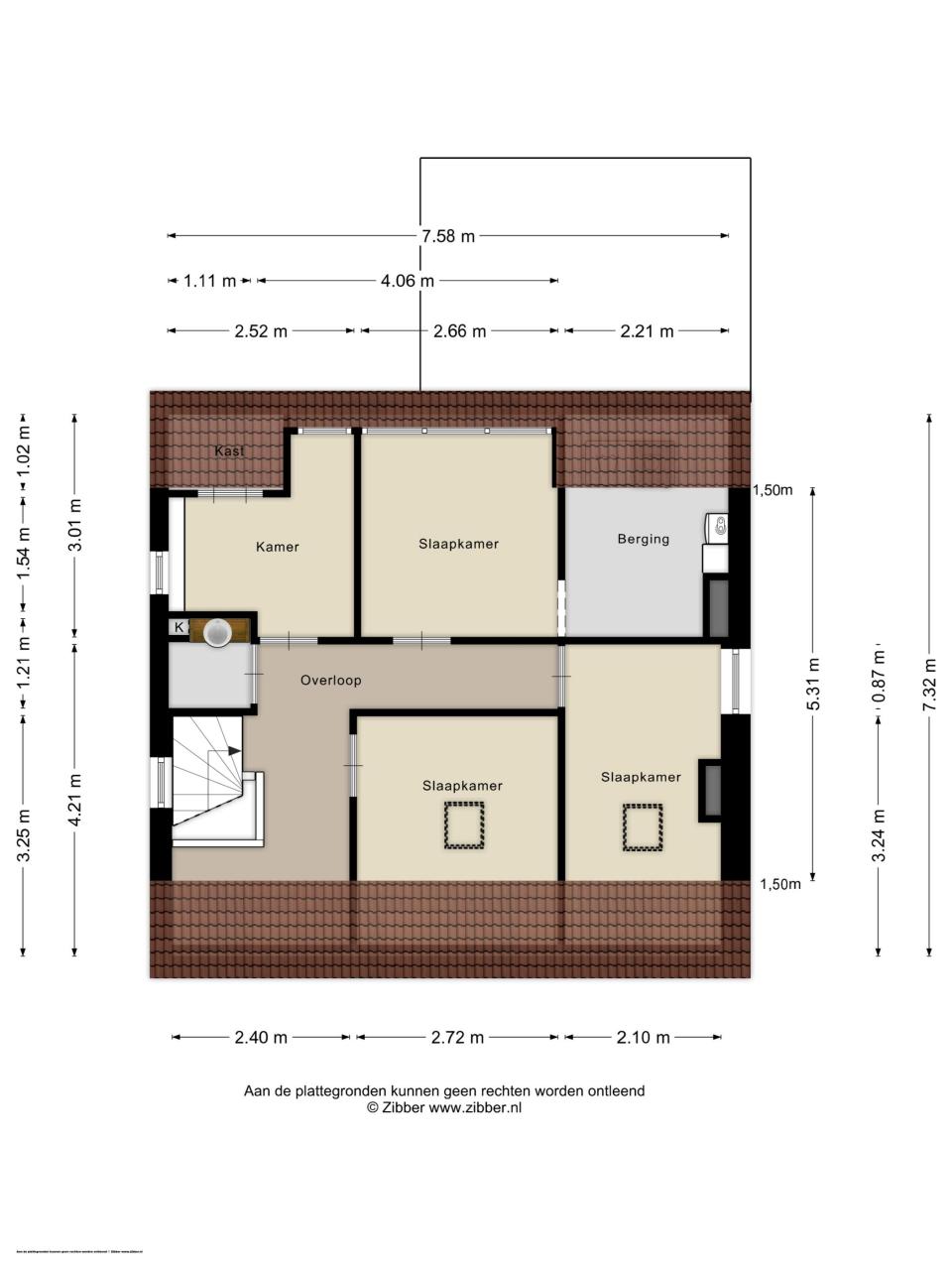 Overloop met ruimte voor een tweede toilet; de aansluitingen hiervoor zijn reeds aanwezig. Slaapkamer 1 ligt aan de achterzijde en beschikt over vaste kastruimte. Slaapkamer 2 is de grootste kamer en staat in directe verbinding met een berging/inloopkast met de cv-opstelling. Slaapkamer 3 en 4 zijn aan de voorzijde gelegen. Aan de achterzijde is een dakkapel aanwezig, wat extra ruimte en licht biedt.