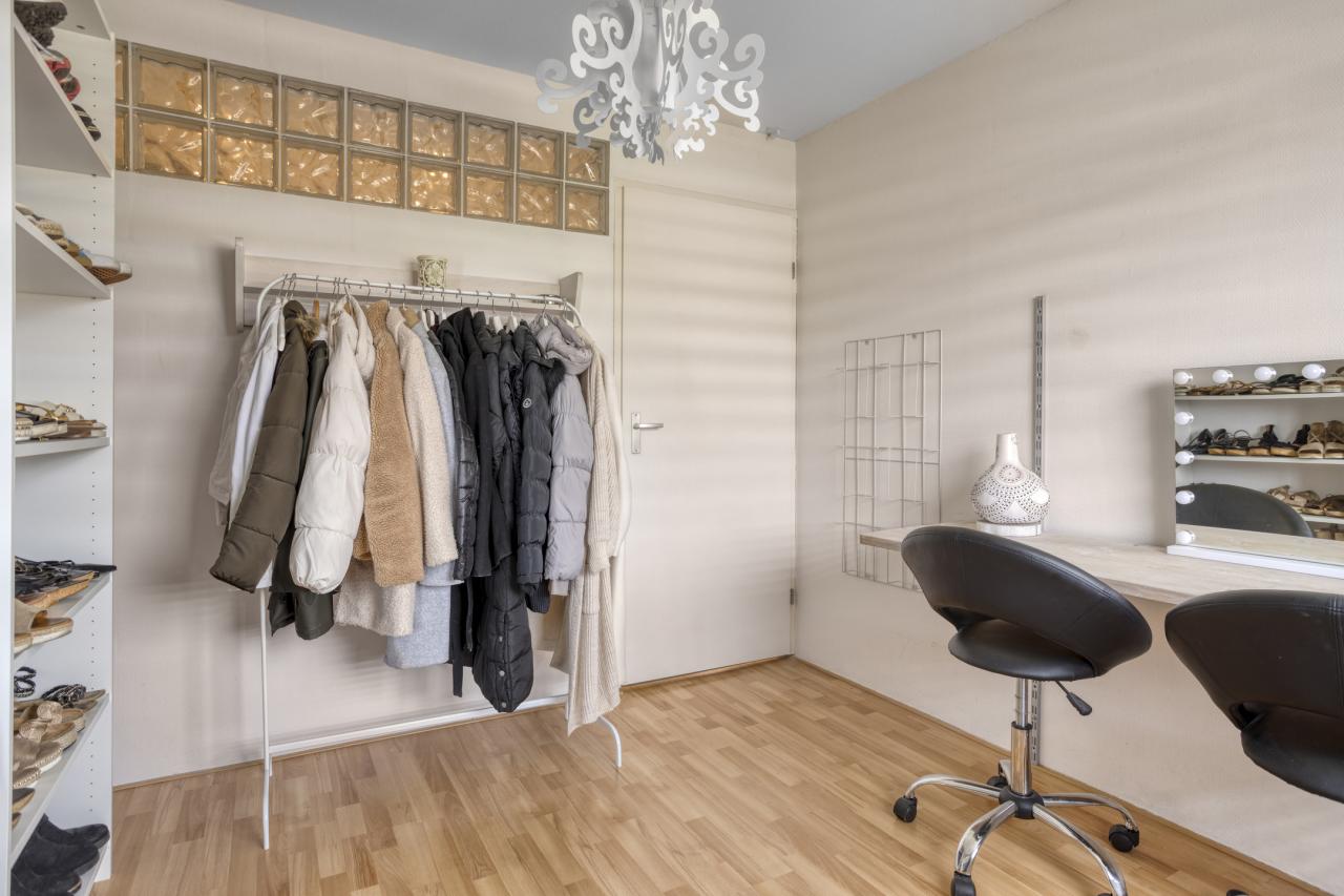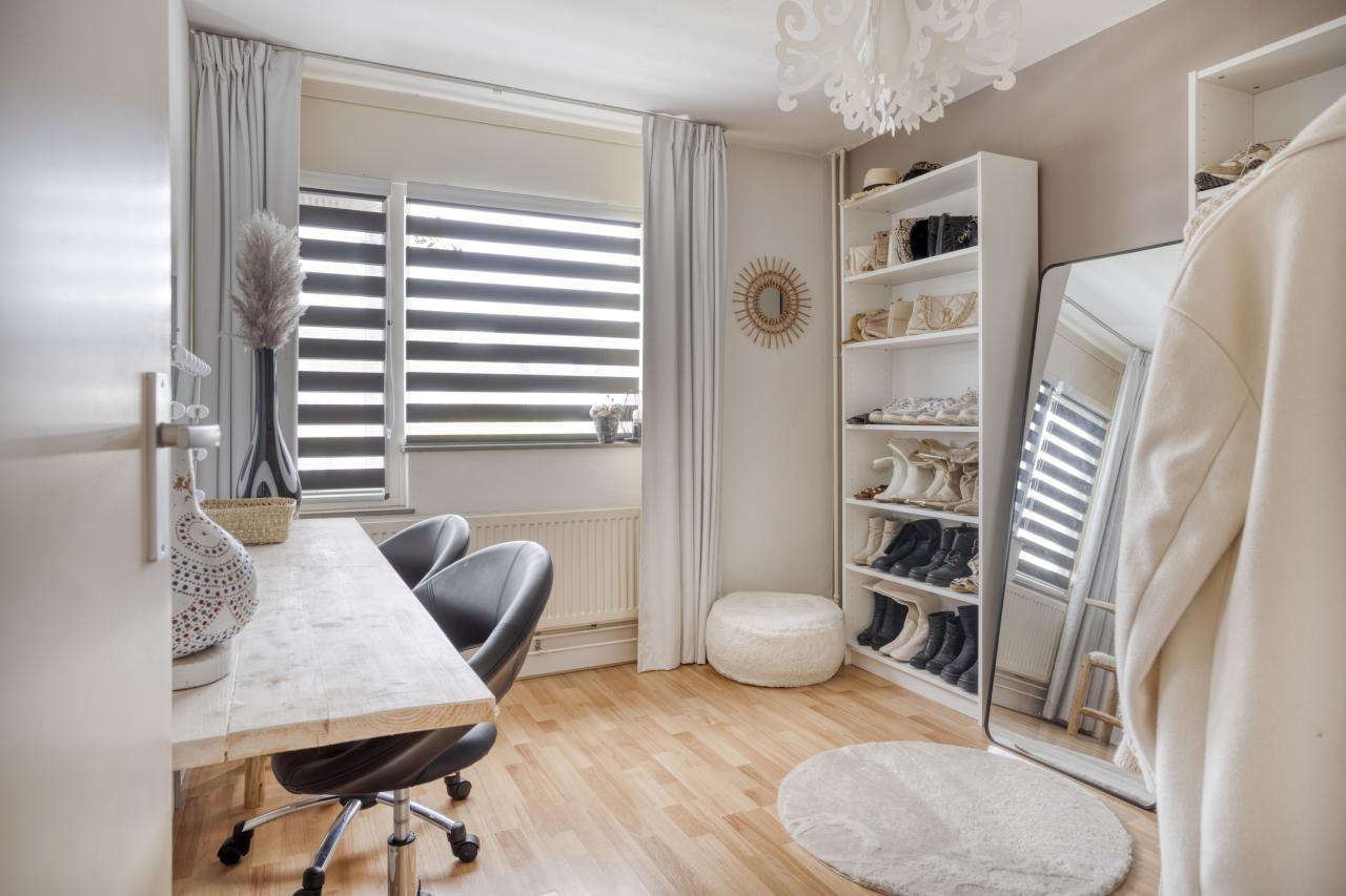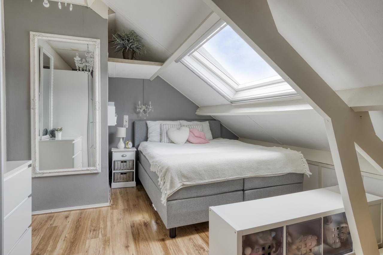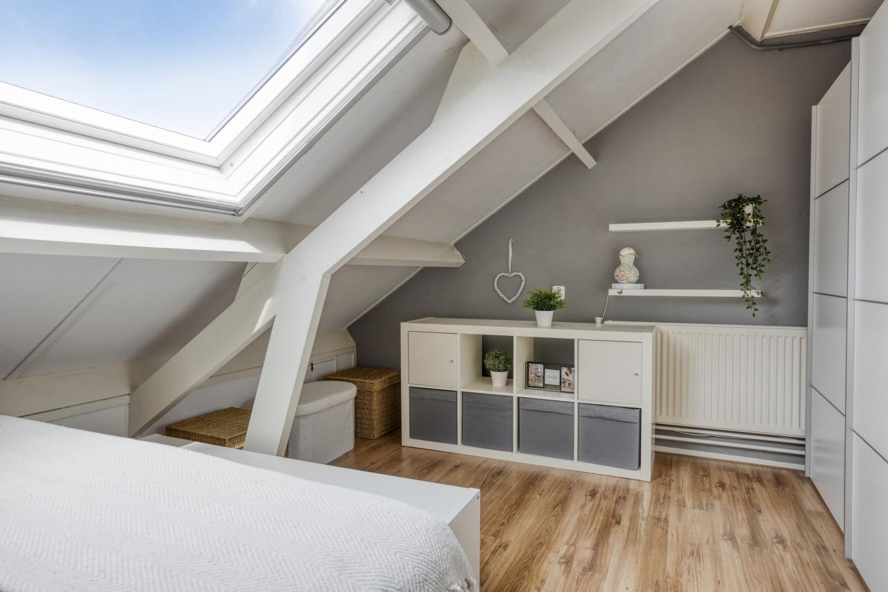 Aan de achterzijde is een royale vierde slaapkamer, eveneens met dakraam. Eventueel kan op de open zolderruimte nog een extra kamer worden gerealiseerd.